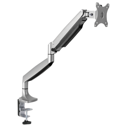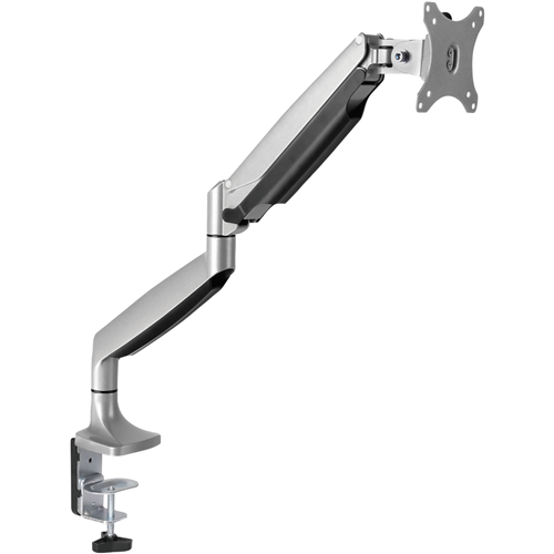 Achieve an ergonomic workspace with the Ergovida Gas Spring Single Monitor Arm. This silver monitor arm allows you to mount your 13-32 monitor and position it exactly where you need it for ideal viewing comfort. The 180 degree rotary VESA plate and flexible arm offer a full range of motion so you can tilt swivel and rotate your display just how you like it. Built-in cable clips keep cords organized and out of the way. This durable monitor stand conveniently clamps to your desk or mounts through a grommet hole for a clean integrated look. With a generous weight capacity of 1-6.5kg it effortlessly counterbalances your monitor so you can reposition it with just a light touch. The integrated strut gauge enables quick and easy weight adjustment for the perfect balance. Create your ideal workstation setup with the versatility and adjustability of the Ergovida Gas Spring Monitor Arm. The manufacturer's part number for this product is EMA10-C12.