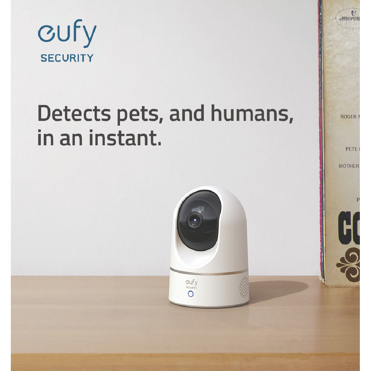 Keep an eye on your home and loved ones from anywhere with the eufy 2K Indoor Pan & Tilt Security Camera. This white security camera records crisp 4MP 1440p video so you can see every detail clearly. With night vision motion detection alerts and two-way audio you'll always know what's happening at home. Just use the eufy Security app to pan and tilt the camera remotely zoom in to see faces and license plates and even talk through the built-in microphone. Thanks to compatibility with Google Assistant and Amazon Alexa you can view live camera feeds with just your voice. Rest assured with one year warranty coverage from eufy. The manufacturer's part number for this product is T8410C24. Check out this home monitoring essential today.