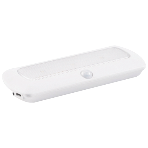 Light up dark spaces without fumbling for a switch. This rechargeable LED motion sensor light automatically turns on when it detects movement making it perfect for hallways closets or anywhere you need hands-free illumination. With 100 lumens of brightness it provides enough light to see clearly without being harsh on your eyes. The USB cable charging means no batteries to replace - just plug it in when needed and you're good to go. Includes a 2 year manufacturer's warranty. Model EV376.