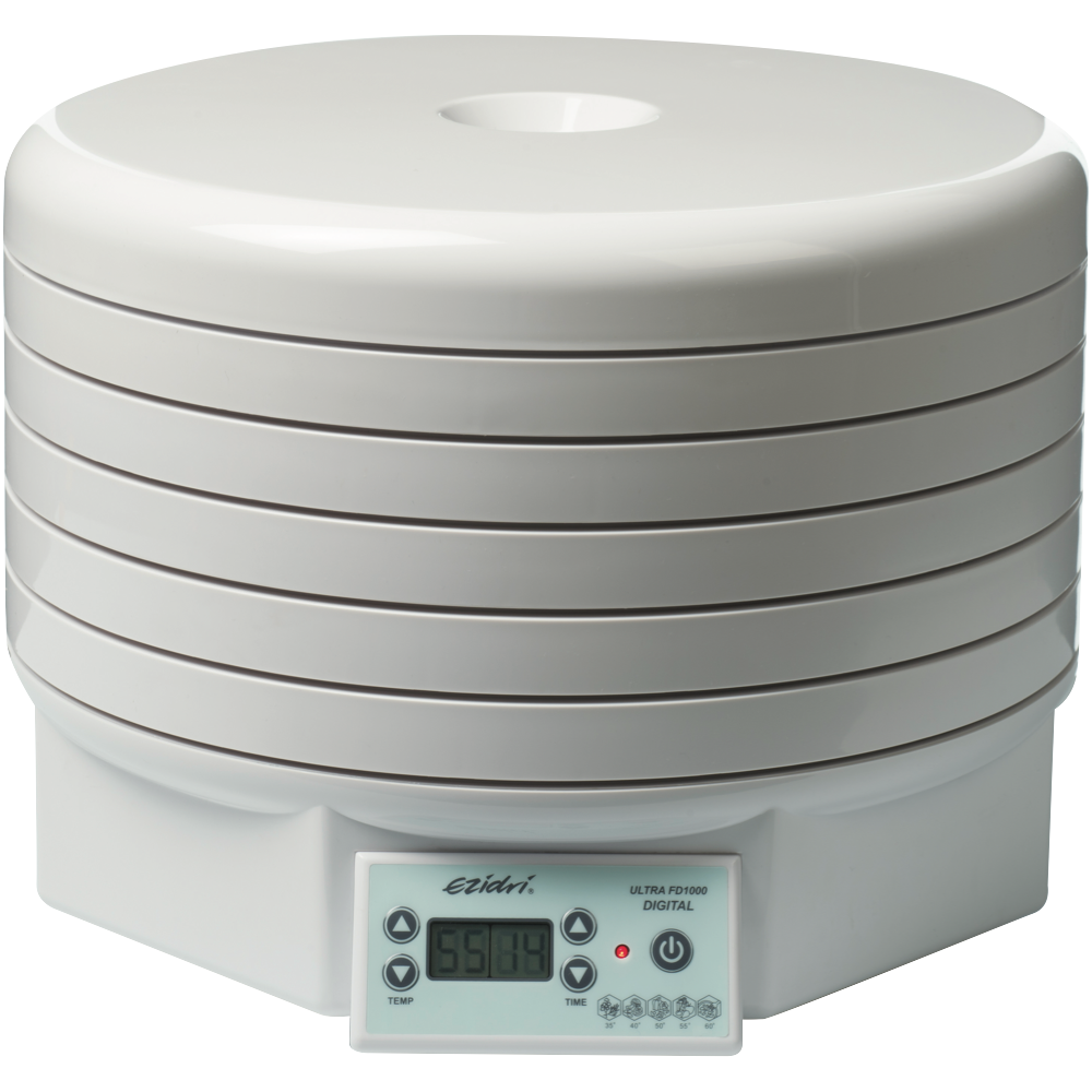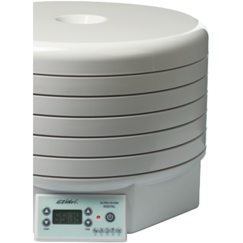 Transform your home into a food dehydrating haven with the EZIDRI Ultra FD1000 Digital Food Dehydrator. This innovative appliance dries foods quickly and evenly thanks to its unique airflow pattern and rotating trays preventing rehydration and bacteria buildup. With an expansive 48-hour timer and temperature range from 30-70°C you can create healthy snacks like fruit leathers jerky dried herbs and more. The triple wall insulation locks in heat while the thermal cut-off feature keeps you safe. Expandable to 30 trays this BPA-free dehydrator is perfect for raw food enthusiasts or anyone who wants to harness the flavour of sun-dried foods. Backed by a 2-year warranty the EZIDRI Ultra FD1000 brings professional results right to your kitchen benchtop. Discover the possibilities with this versatile appliance today. The manufacturer's part number for this product is D00-D. Bring out the natural flavours in your favourite foods with the EZIDRI Ultra FD1000 Digital Food Dehydrator.