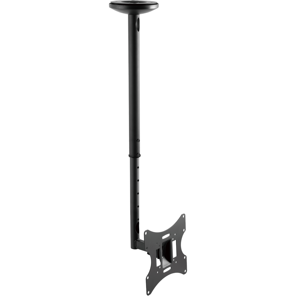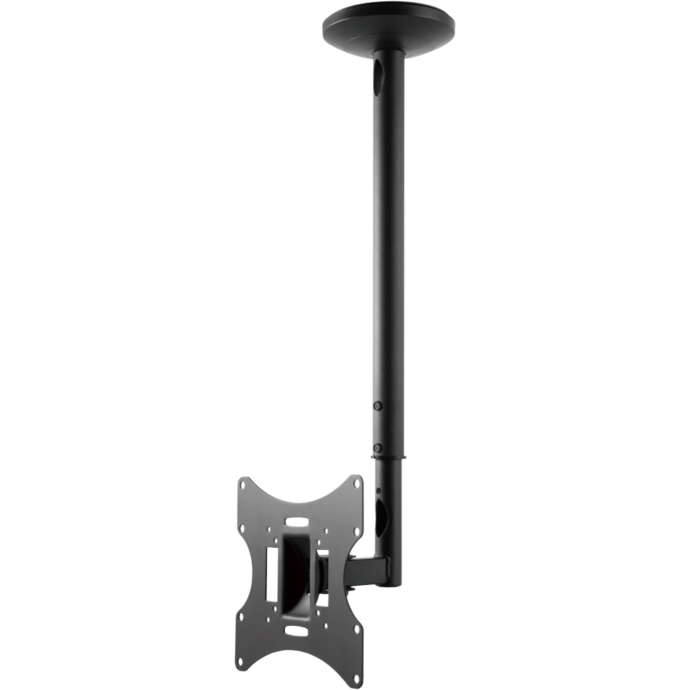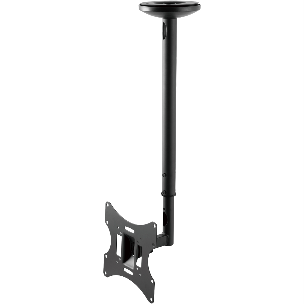 Mount your TV to the ceiling with this versatile VCL-100B bracket designed for screens from 10 to 43 inches. The adjustable design lets you swivel your TV 180° and tilt it up or down by 20° so you can find the perfect viewing angle from anywhere in the room. Compatible with VESA mounts up to 200 x 200mm this black ceiling mount safely holds TVs weighing up to 30kg. Everything you need comes in the box including mounting hardware and easy-to-follow installation instructions. Backed by a 10-year warranty. Model VCL-100B.