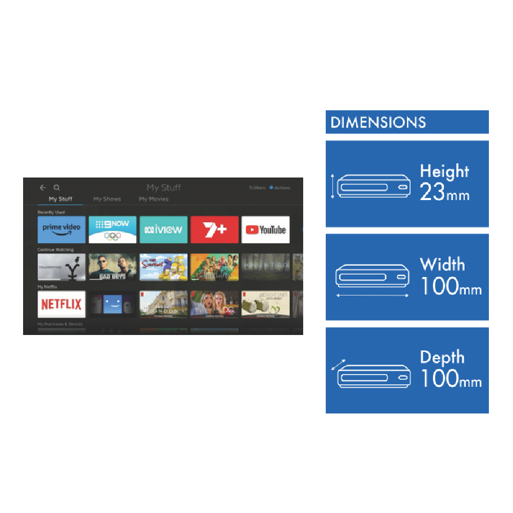Meet your new streaming buddy the Fetch Mini G5! This sleek black box brings premium entertainment right to your TV with built-in Wi-Fi 6 and Bluetooth. It's got you covered for 4K HDR too supporting Dolby Vision HDR10 and HDR10+. Plus the handy voice remote makes it a breeze to find what you want to watch. Setup's easy peasy - just plub in the HDMI cable and connect to your home network. The Fetch Mini G5 (model HY4424) measures just 23 x 100 x 100 mm so it won't hog space. And it's backed by a 1-year warranty for extra peace of mind.