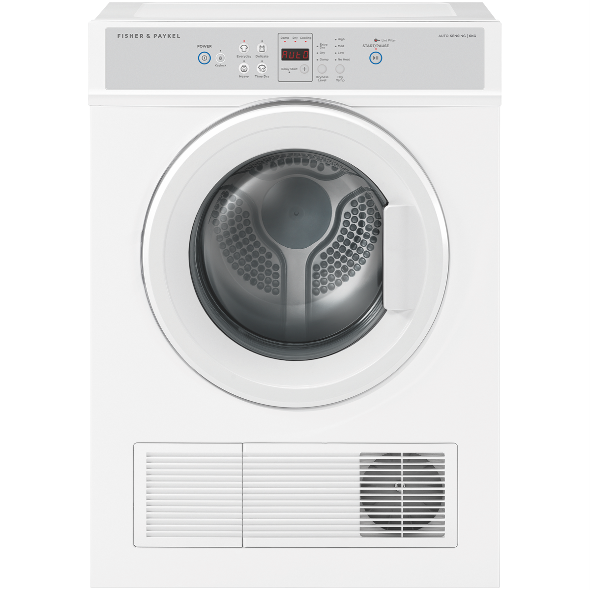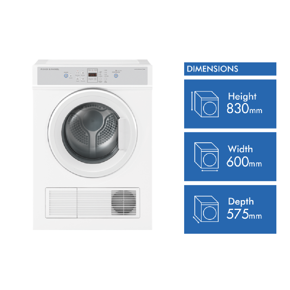 This Fisher & Paykel 6kg sensor dryer makes doing the laundry effortless. With its vented design and multiple drying programs you can dry everything from delicate fabrics to heavy loads with ease. The intuitive sensor technology optimizes drying time and temperature for up to four drying programs. Choose from Delicate Everyday Heavy and Timed cycles to get just the right dryness for each load. With four temperature settings you can safely dry a wide variety of fabrics. This clothes dryer fits easily into small spaces measuring just 600mm wide. At 830mm high and 575mm deep the compact dryer mounts on walls for added convenience. The reverse tumble feature prevents clothes tangling while the delay start lets you schedule drying when it suits you. With a bright white finish this dryer adds simple style to your laundry. Backed by Fisher & Paykel's 2 year warranty this 6kg sensor clothes dryer part number DE6060M2 makes laundry a breeze.