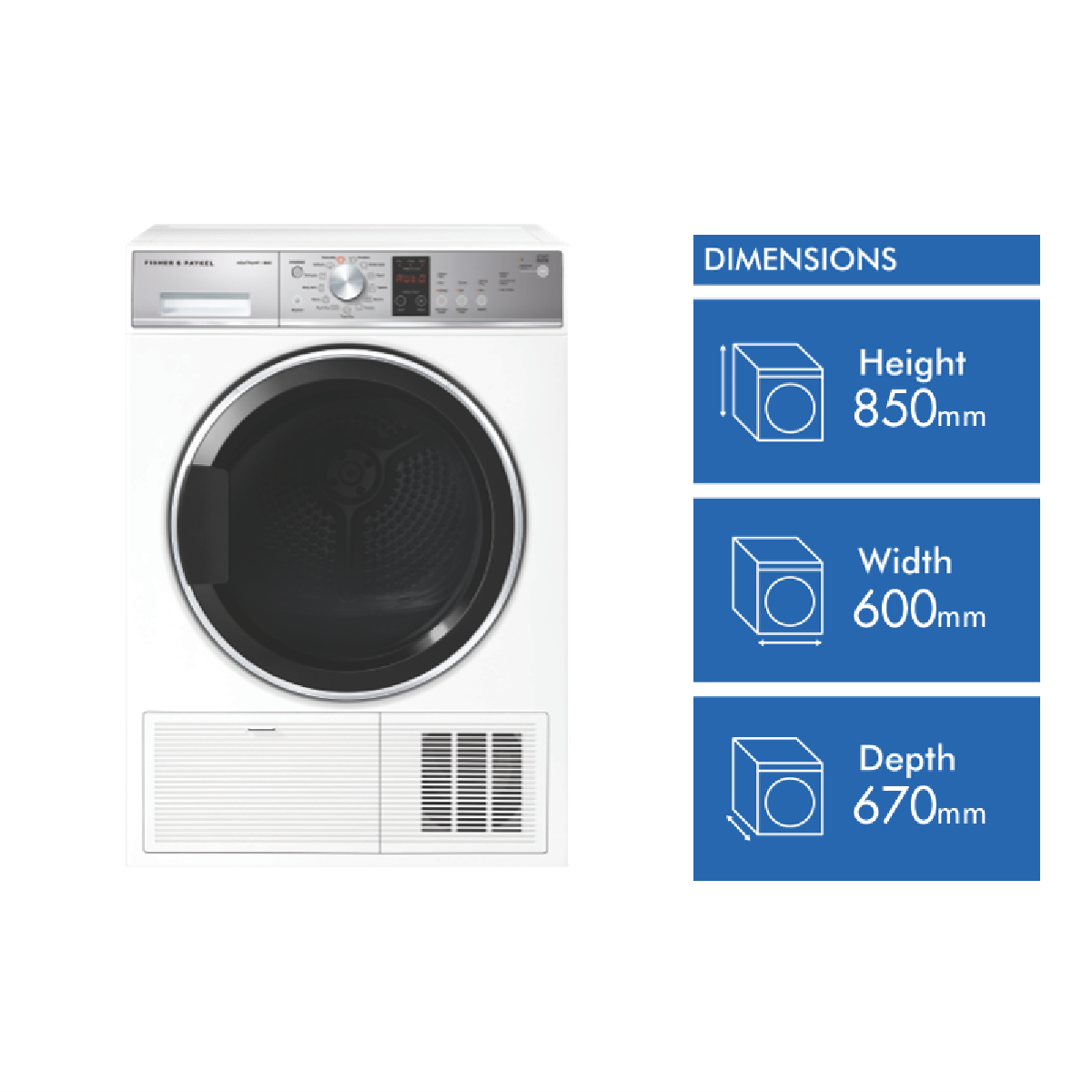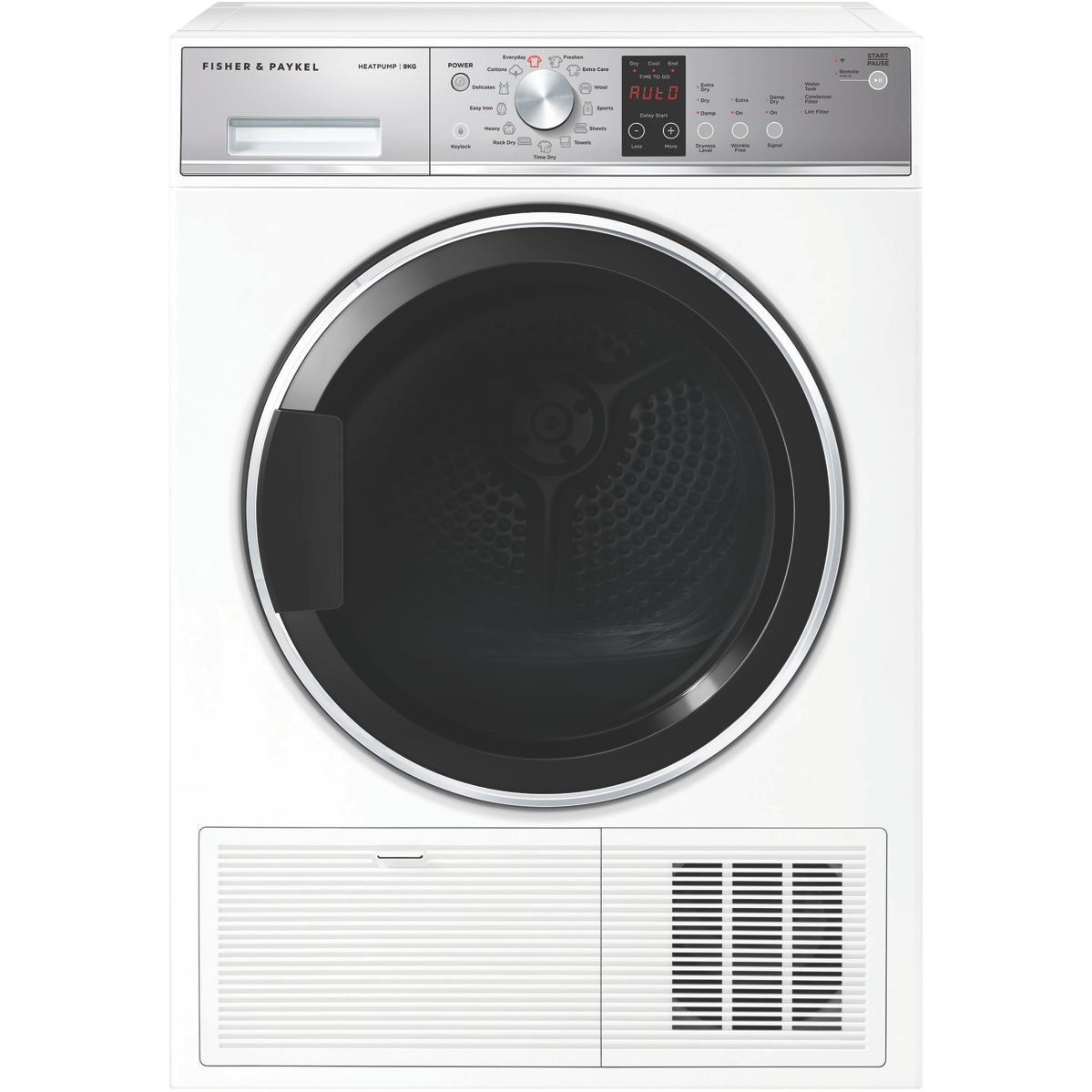 Step into effortless laundry days with the Fisher & Paykel 9kg Heat Pump Clothes Dryer. This innovative dryer combines sensor technology and specialized drying programs to provide customized care for all your fabrics. With its generous 9 kilogram drying capacity you can dry larger loads in one go saving you time. Heat pump technology gently dries clothes at lower temperatures protecting fabrics and saving energy - rated an impressive 9 stars. Choose from 13 tailored cycles including Everyday Delicates and Sportswear to dry clothes just the way you need. Auto-sensing technology detects moisture levels and adjusts drying time accordingly so clothes come out feeling fresh and wrinkle-free every time. The contemporary white finish and sleek design will complement any laundry space. This dryer features a roomy internal drum reversible door and smooth glass door for easy loading and unloading. With no external venting required installation is simplified. Connect it to your home Wi-Fi to control and monitor cycles remotely. Rely on this hardworking dryer from Fisher & Paykel to make laundry a breeze for years to come. The manufacturer's part number for this product is DH9060P2. Learn more about this innovative dryer s features and place your order today.