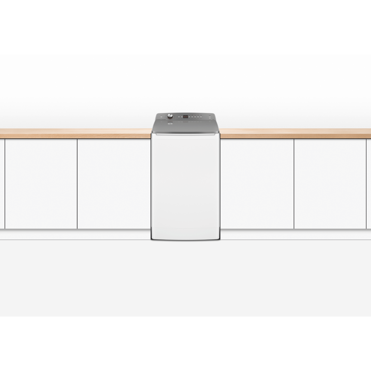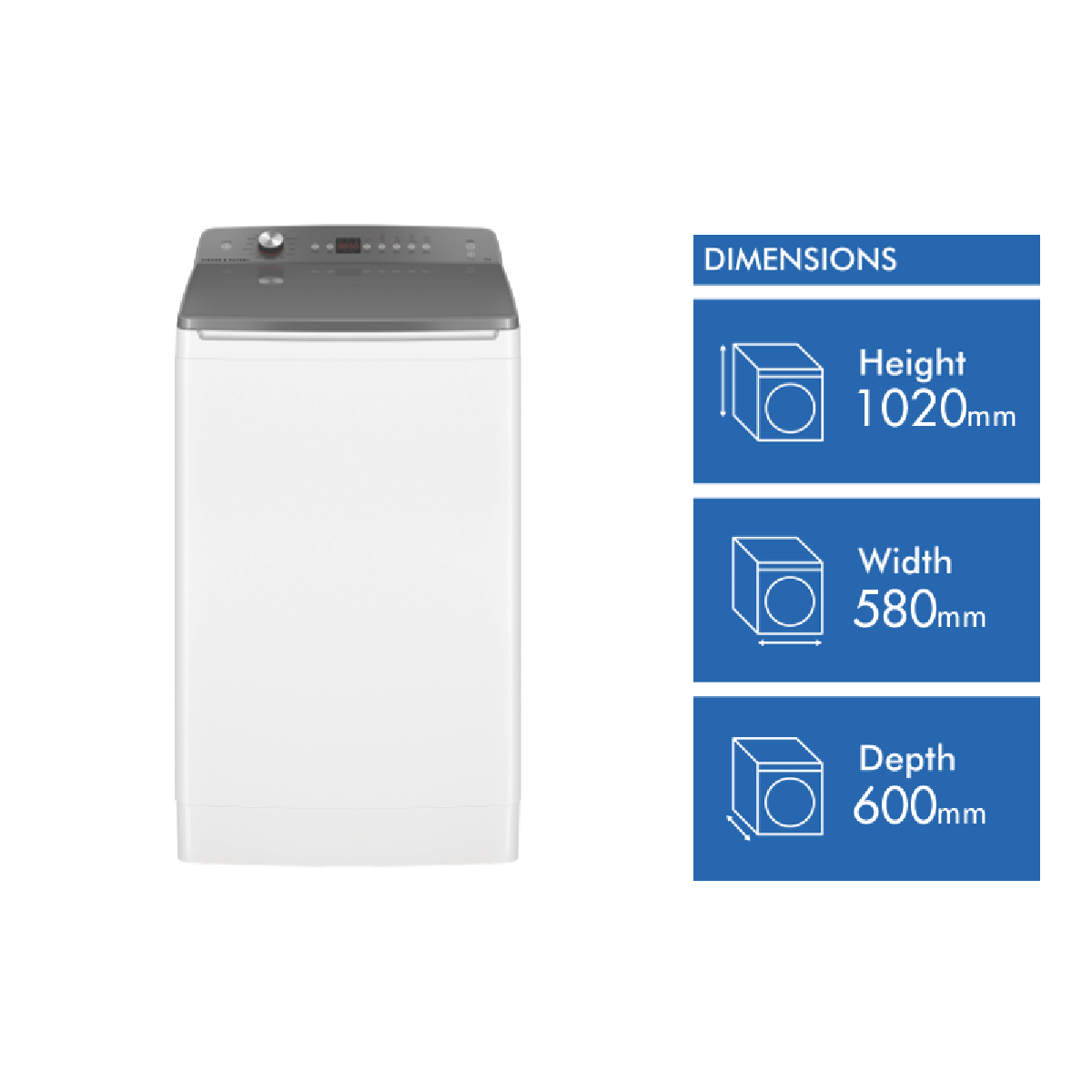 Only available at The Good Guys. With a 9kg capacity and efficient 4.5 star energy rating the Fisher & Paykel Series 5 WL9058G1 top loader washing machine makes light work of the weekly wash. The large 9kg wash capacity caters to medium-sized households fitting a typical load of towels or sheets with ease while the Eco wash setting helps conserve water and energy. The intuitive SmartTouch control panel allows you to precisely adjust wash settings like temperature and spin speed up to 750rpm for each load. Specialised cycles like Delicate Wool and Hygiene ensure your clothes receive the right level of care. Features like the Soft Close lid Advanced Out of Balance detection and Pillow Drum design provide added convenience and care for fabrics. With 14 flexible wash programs and options like Delay Start Extra Rinse and Soak you can customise every wash to suit your needs. In classic Fisher & Paykel style the WL9058G1 sports a stylish white finish that will complement any laundry. Covered by a 2 year manufacturer's warranty for peace of mind the Fisher & Paykel WL9058G1 makes washing simple for busy households. The manufacturer's part number for this product is WL9058G1. For a top loader that combines efficiency with flexibility look no further than the Fisher & Paykel Series 5 - 9kg washing machine.