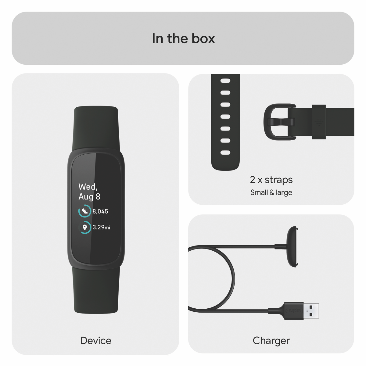 Feel inspired to accomplish your fitness and health related goals with the Fitbit Inspire 3 Midnight Zen/Black FB424BKBK-FRCJK. Track your vigorous exercise routines and general wellbeing is as simple as wearing the Inspire 3 daily; this fitness band monitors and collects a wide variety of movements body actions and body functions and presents all this information for you to review. The Daily Readiness Score lets you know if your body is ready for another workout or it needs more time to recover so you can adjust your physical activity accordingly(1). Relieve pent up stress and general uneasiness using the included Guided Breathing Sessions and Stress Management Score; these both work to indicate your current stress levels and displays what your body is feeling alongside offering healthier ways to handle pent up stress. You can always track your performance while your awake but it all starts from a great night s sleep. While wearing the Fitbit Inspire 3 to bed you can track your Sleep Score light deep and REM sleep sleeping heart rate and your consistent sleeping schedule to see if you really are getting a good night's sleep. Measure your heart rate during exercise to see if you're working out at your best during fat burn cardio or peak zones then adjust your efforts accordingly to get the best out of your own performance. All these features are available for up to ten days without a single recharge(2) the Inspire 3 fitness tracker is always available here to assist your daily exercise and health needs. Disclaimers: (1) Fitbit Premium membership required to access Daily Readiness Sleep Profile and most in-app mindfulness sessions. Premium content recommendations are not available in all locales and may be in English only. (2) Battery life varies with use & other factors.
