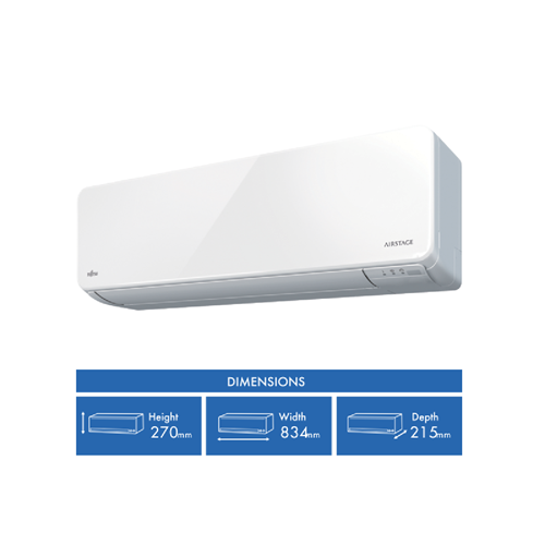 Beat the heat this summer with the Fujitsu 3.5kW Cooling Only Split System Air Conditioner. This energy efficient unit is ideal for small rooms with its inverter technology providing powerful yet quiet cooling. The apple-catechin filtration captures dust and allergens circulating fresh air around your home. With a cooling capacity of 3.5kW and an energy rating of 4 stars this air conditioner cools efficiently. The inverter allows it to adjust performance based on conditions saving power. It operates at a quiet 40 decibels for unobtrusive cooling. You can customize operation with the included wireless remote. The indoor unit features a compact and lightweight design at 834mm wide 270mm high and 215mm deep. It weighs just 9.5kg for easy installation. The outdoor unit measures 663mm wide 541mm high and 290mm deep weighing 25kg. Both units are durable and made to last.Keep your home comfortable on hot days with the Fujitsu 3.5kW Split System Air Conditioner. Its energy efficiency powerful cooling capacity and quiet operation create the optimal temperature in small spaces. The manufacturer's part number for this product is SET-ASTH12CNCA. Check out this Fujitsu air conditioner for your home cooling needs today.