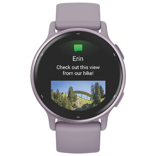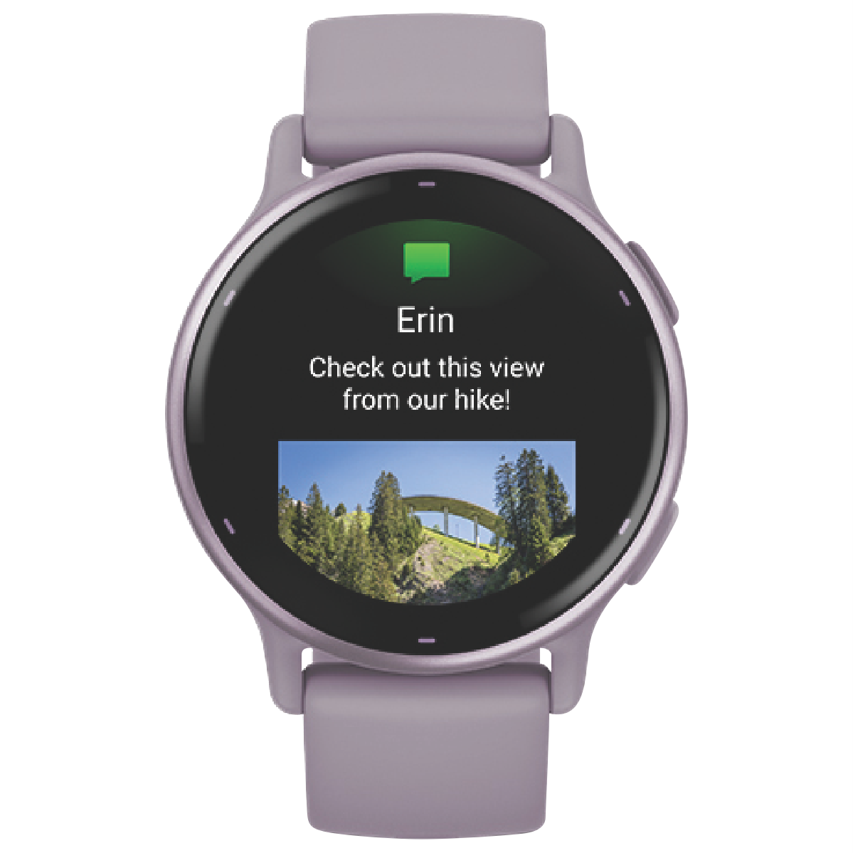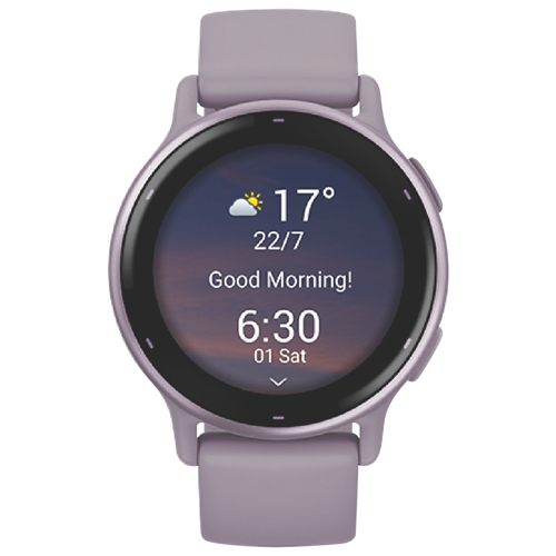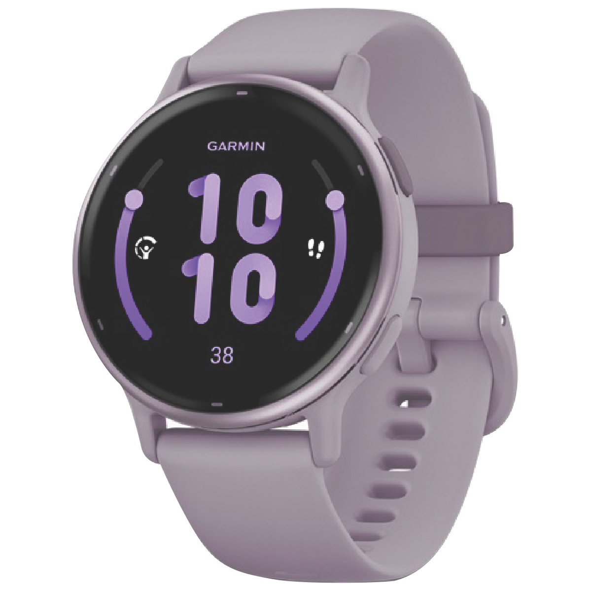 Make your wrists the command center of your active lifestyle with the Garmin Vivoactive 5 smartwatch in stylish orchid and orchid metallic. This sleek smartwatch packs health insights music payments and more into a slim lightweight design with an AMOLED display. Track your energy levels Pulse OX heart rate sleep and stress 24/7. Built-in GPS lets you accurately map runs rides and more. Safety features include incident detection and an assistance button to alert emergency contacts. Pay for purchases right from your wrist. Get convenient smartphone notifications. The battery lasts up to 11 days in smartwatch mode or 5 days with the display always on. Swim-proof and ready for any adventure the Vivoactive 5 is your daily companion to elevate your health and enhance your life. Customize your smartwatch with thousands of free watch faces apps and more from the Connect IQ store. The manufacturer's part number for this product is 010-02862-13. Check out the Garmin Vivoactive 5 today.