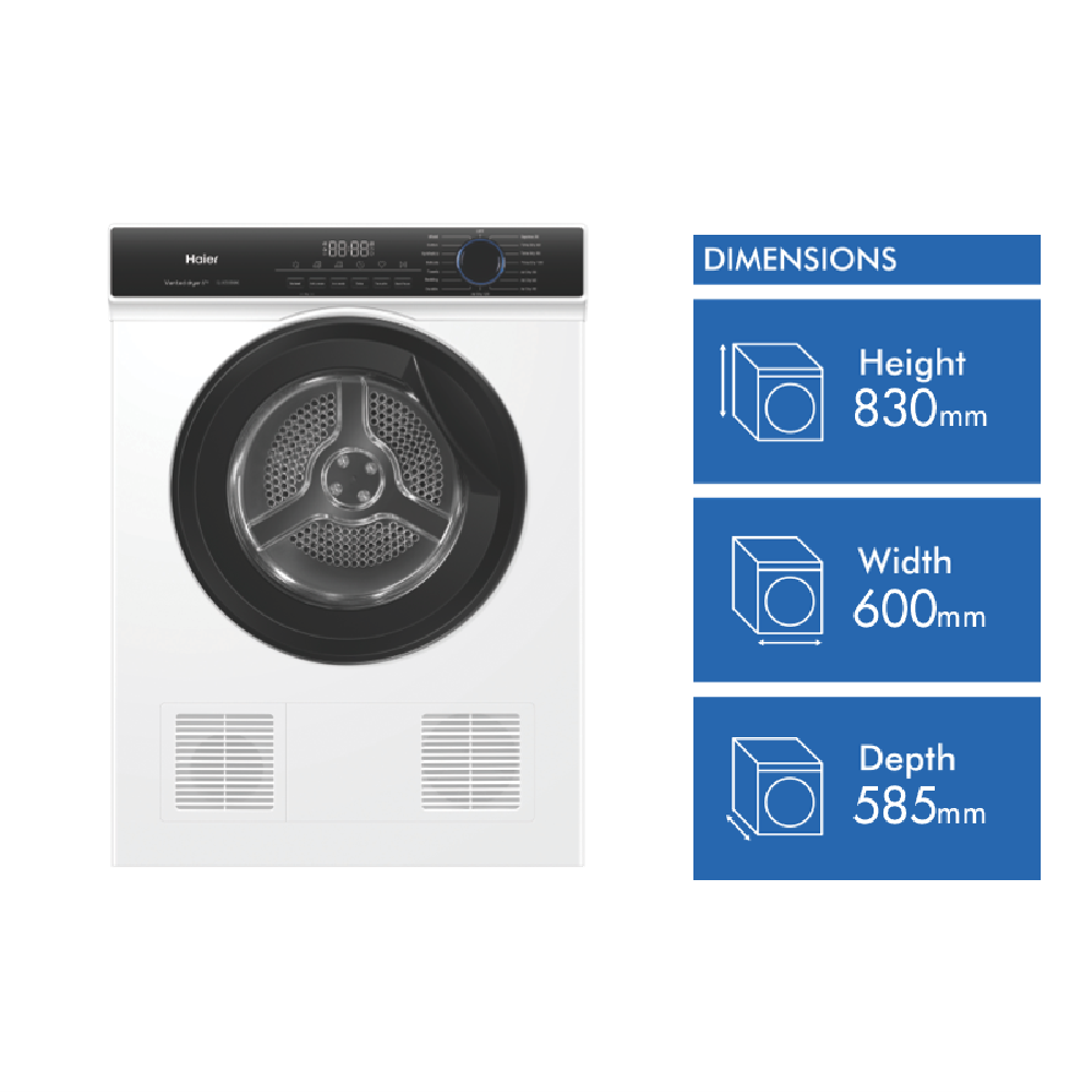 Dry clothes efficiently and conveniently with the Haier 6kg Vented Dryer. This wall-mountable white clothes dryer features a generous 6kg drying capacity and 15 programs including Air Dry Bedding Cottons Delicate Durable Express 30 Mixed Synthetics Time Dry and Towels so you can select the perfect cycle for each load. With auto-sensing technology anti-crease function and adjustable dryness levels this dryer takes the guesswork out of drying for optimized results. Mounting and stacking kits allow flexible installation. The easy access lint filter and keylock add convenience. With front and rear venting options this Haier clothes dryer can fit into any space. Backed by a 2 year manufacturer's warranty for peace of mind. The HDV60AWW1 is the manufacturer's part number for this dryer.