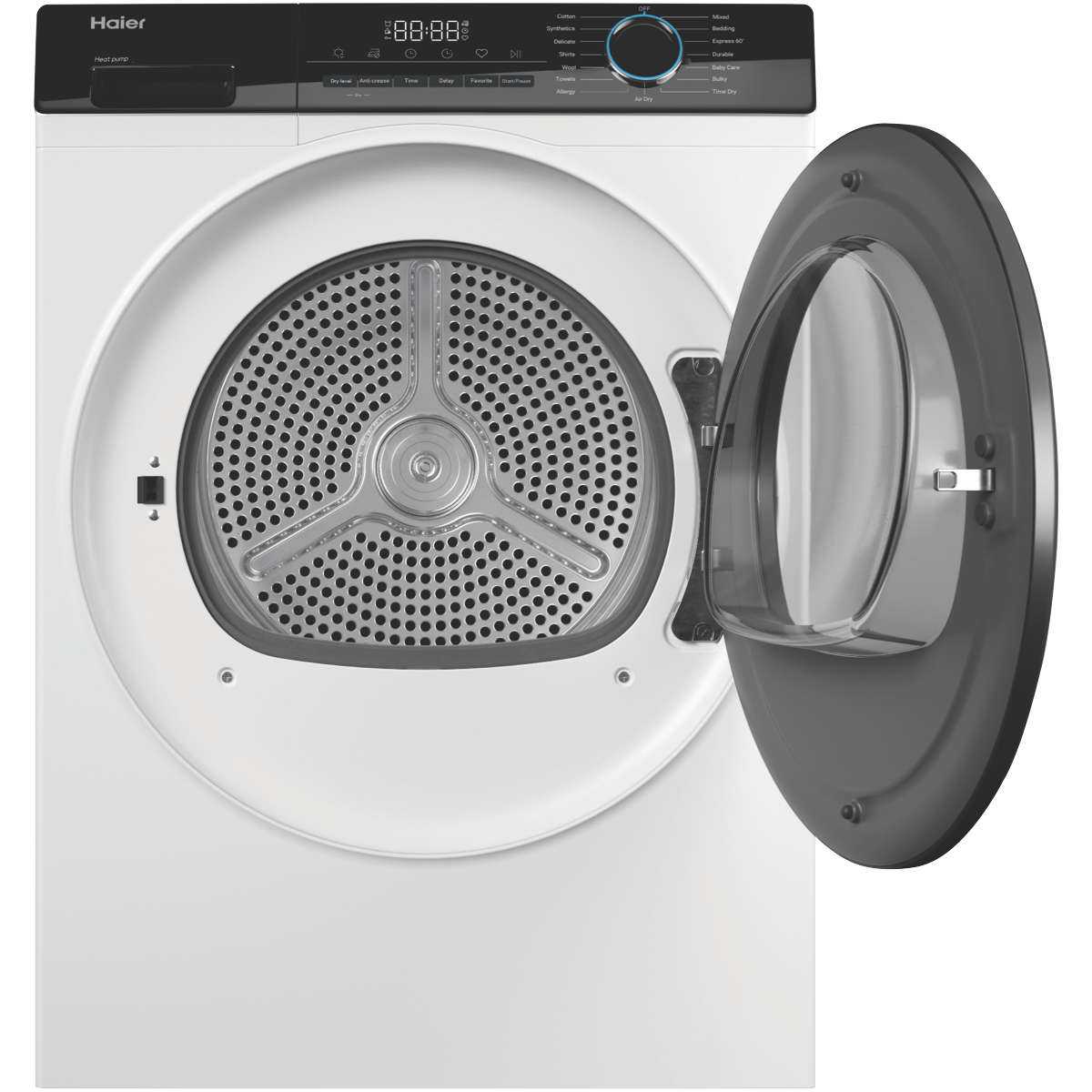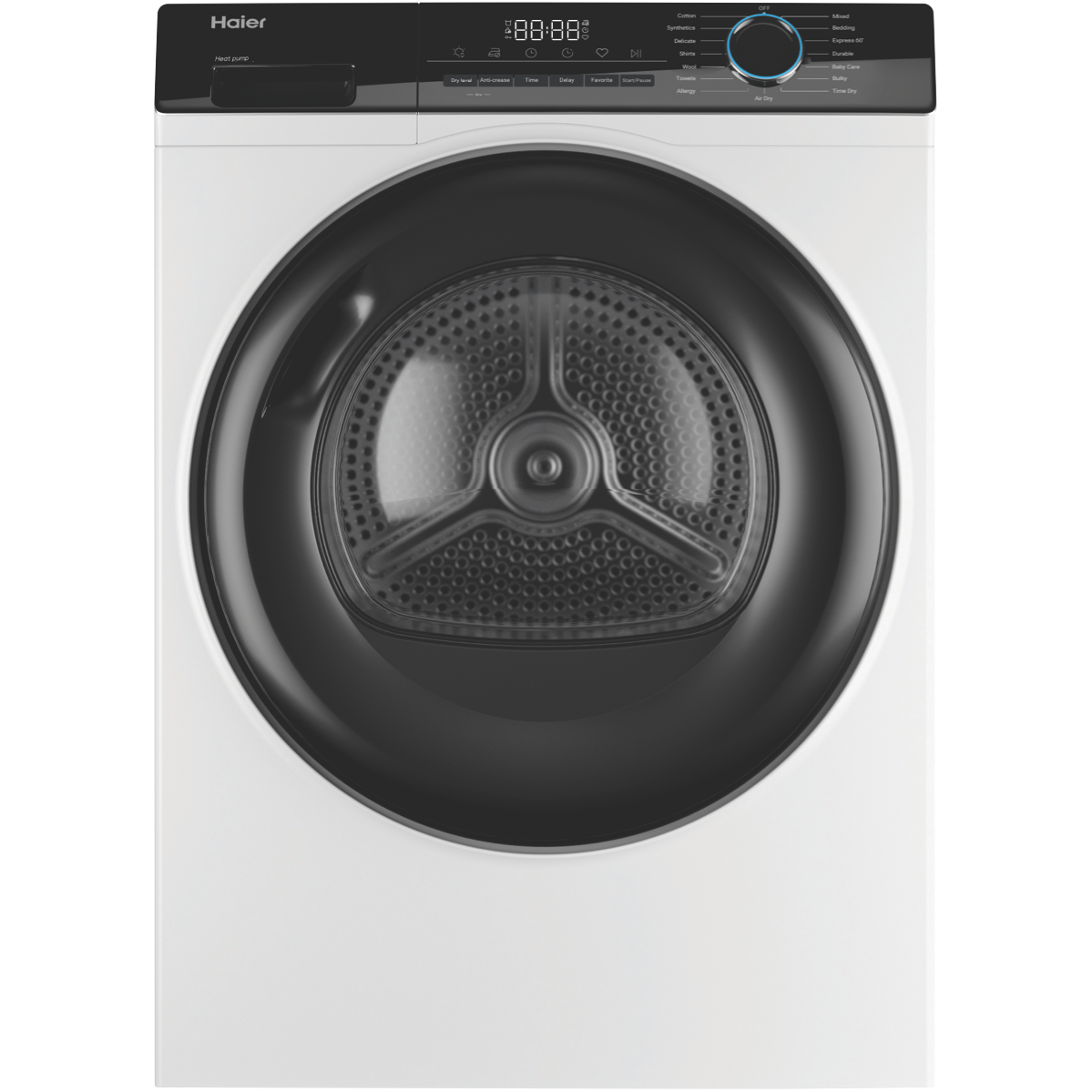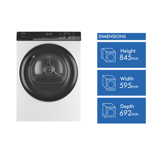 Bring the power of a heat pump dryer home with the Haier 8kg Heat Pump Dryer HDHP80AW1. This white clothes dryer dries up to 8kg of laundry at a time making it perfect for medium-sized households. With its 8 star energy rating it's designed for efficient drying to help reduce your energy bills. The heat pump system recirculates hot air to dry clothes gently without the need for external venting making installation straightforward. With 15 tailored drying programs like Air Dry Delicate Wool and Baby Care this dryer caters to all your laundry needs. It features options like Sensor Drying with auto moisture sensing to prevent over-drying as well as Dryness Level settings of Damp Dry or Extra Dry. The stainless steel drum is gentle on fabrics. At 595mm wide 845mm high and 670mm deep it's sized to fit well in the laundry. Adjustable feet allow you to level it properly on uneven floors. A handy end-of-cycle signal alerts you when your laundry is ready. With intuitive controls including a Keylock function it's simple to operate. Enjoy the convenience of a dryer designed to make laundry day easy.Backed by a 2 year manufacturer's warranty for peace of mind the Haier 8kg Heat Pump Dryer HDHP80AW1 makes an ideal choice for any home. Contact us to learn more about this innovative dryer today. The manufacturer's part number for this product is HDHP80AW1.