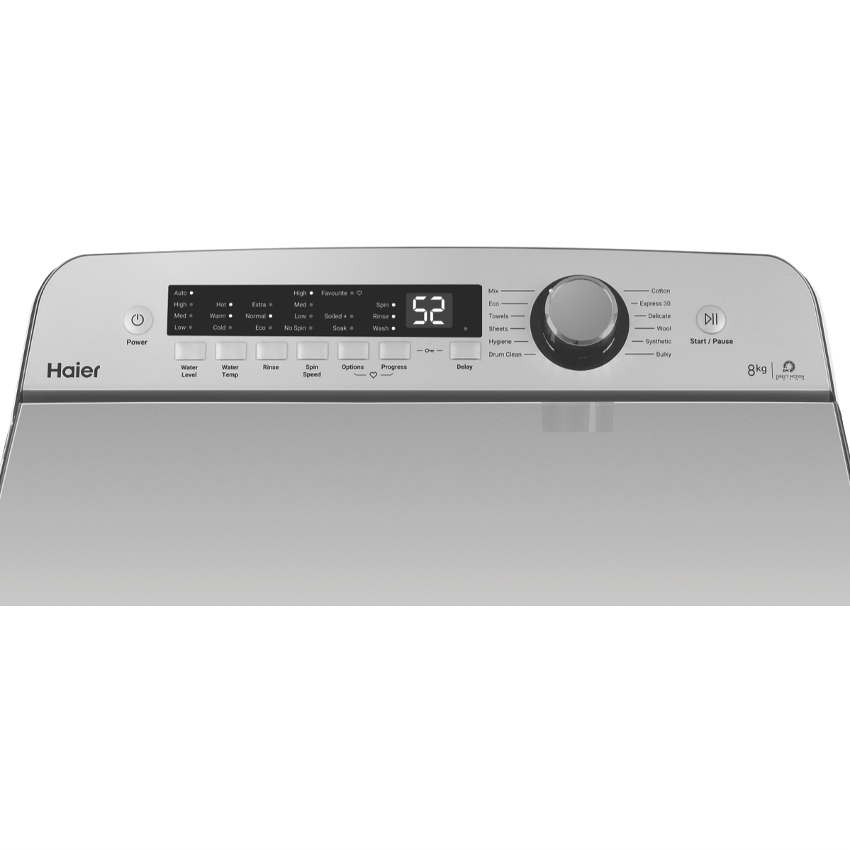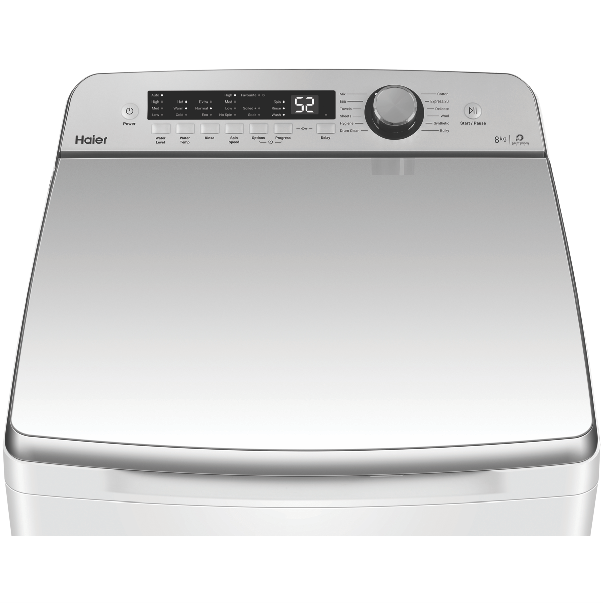 Step into a world of efficient effortless washing with the Haier 8kg Top Load Washer. This powerful appliance makes laundry a breeze with its generous 8kg capacity perfect for handling medium to large loads with ease. The white finish lends a clean modern look suitable for any home. At the heart of this washer is the highly effective Eco wash program. Not only does it deliver an impeccable clean using just 82 litres of water per wash it has also achieved an impressive 4 star WELS water rating for outstanding water efficiency. With 12 versatile programs to choose from including Bulky Cottons Delicate and Wool you'll find the perfect cycle for all fabric types. The Hygienic cycle eliminates up to 99.9% of germs and bacteria for peace of mind when washing kids clothes or sports gear. While the Express 30 program washes lightly soiled garments in just 30 minutes. With a maximum spin speed of 750rpm moisture is extracted efficiently so clothes spend less time in the dryer. The soft close lid ensures smooth quiet operation and auto load sensing provides optimised wash performance by detecting the size of each load. Bringing together convenience efficiency and effectiveness the Haier 8kg Top Load Washer makes easy work of the weekly wash. The manufacturer's part number for this product is HWT08AN1. Discover how this time-saving washer can streamline your laundry routine today.