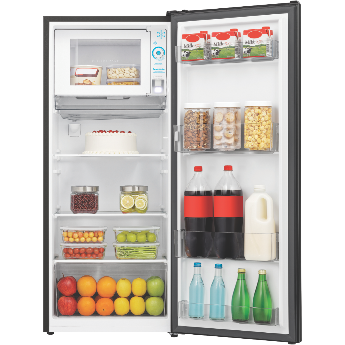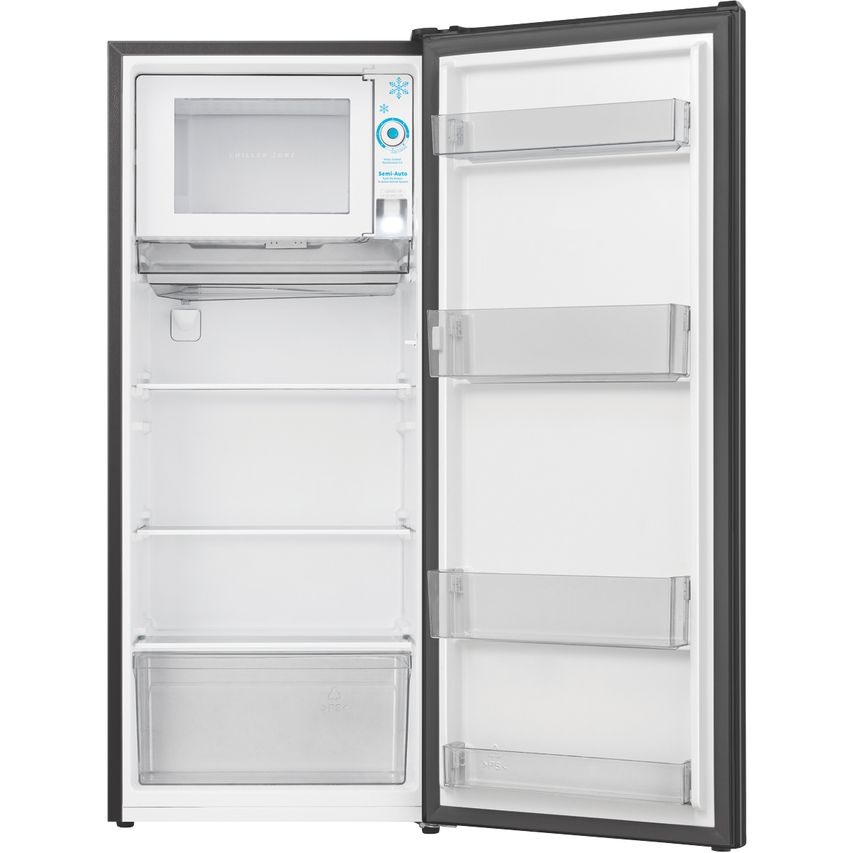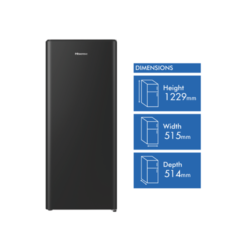A must-have home addition the Hisense 179L Bar Fridge delivers ample chilled storage with its generous 179 litre capacity. This spacious Black bar fridge features a 156 litre fridge and 23 litre freezer providing the perfect balance of refrigeration and freezing space. The right hinge door opens to reveal three shelves and two crispers inside the fridge compartment while the freezer contains an ice cube tray for chilled drinks. Rated 2.5 stars for energy efficiency this fridge measures 515mm W x 1229mm H x 514mm D for a slimline build that fits into tight spaces. With its sleek Black finish that blends into any decor the Hisense 179L Bar Fridge offers the ultimate in convenient refrigeration. The manufacturer's part number for this product is HRBF179B. Check out this bar fridge today to keep groceries and beverages chilled to perfection.