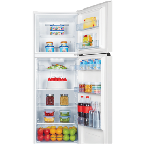 Discover the perfect blend of style and functionality with the Hisense 326L Top Mount Refrigerator. This sleek white fridge offers a generous total capacity of 326L with a spacious 253L fridge compartment and a 73L freezer. Enjoy optimal food preservation thanks to the innovative inverter technology Total No Frost system and Multi Airflow design that ensures even cooling throughout. The seamlessly integrated recessed handles add a touch of elegance while the XXL door balcony provides ample storage space for all your essentials. Keep your meats and fish fresh in the dedicated Fresh Zone compartment. With a remarkable 4.5 star energy rating this top mount refrigerator is both energy-efficient and environmentally friendly. The reversible door hinge allows for flexible installation in any kitchen layout. The manufacturer's part number for this product is HRTF325. Upgrade your kitchen with the Hisense 326L Top Mount Refrigerator and experience the convenience of a well-organized and reliable refrigeration solution.