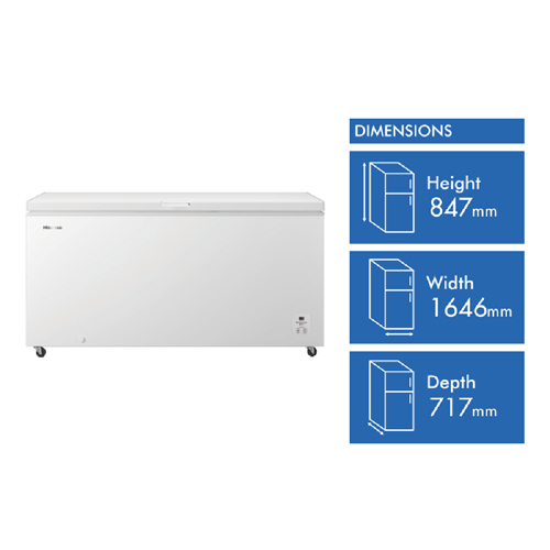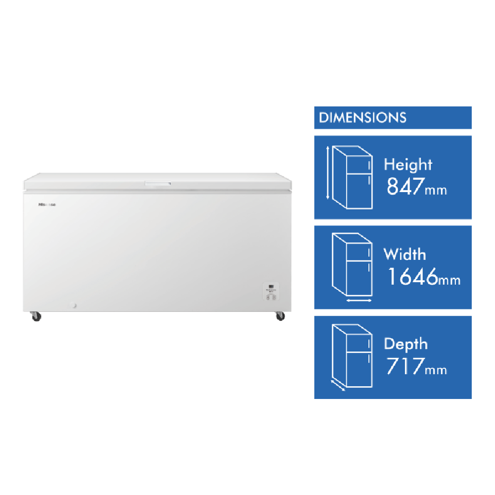 This Hisense Hybrid Chest Freezer gives you 500L of flexible storage space. Switch between freezer and fridge modes to suit your needs. The boundless door design makes cleaning a breeze while ultrathin hinges save space. You'll love the hands-free self-standing door and smooth sliding basket for easy access. With caster wheels you can move it around effortlessly. The adjustable thermostat and electronic temperature control help keep your food at just the right temperature. Plus the convenient water drain makes maintenance simple. This versatile appliance measures 1646mm wide 847mm high and 717mm deep. Hisense backs it with a 3-year warranty. For flexible food storage that adapts to your needs check out the Hisense HRCF501.