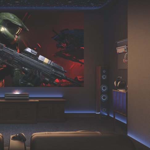 • Smart projector with DLP tech, 4K resolution, ultra short throw