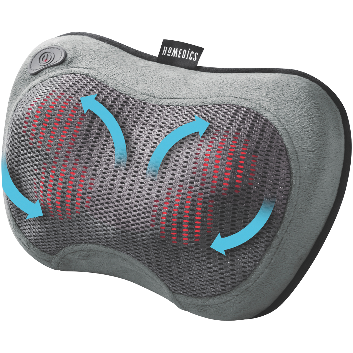 Experience soothing relaxation and release tension with the Homedics Cordless Shiatsu Massager. This portable massage pillow delivers deep-kneading shiatsu massage thanks to its advanced massage nodes that work wonders on sore muscles. Its integrated heating function provides soothing warmth while the reverse mode allows you to target specific areas. Lightweight and cordless this massager runs for up to 45 minutes on battery power and is easily recharged in just 4 hours. With its versatile strap you can use it on your neck back legs and more. The grey massage cushion measures 90mm wide x 345mm long x 220mm high and weighs 1.75kg. It comes with a 1 year warranty so you can enjoy long-lasting relief anywhere. The manufacturer's part number for this product is SP-115H-AU. Give your body the care it deserves and relax with the Homedics Shiatsu Massager.