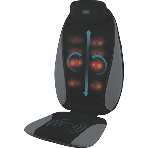 Rejuvenate your relaxation with the Homedics Shiatsu Pro Plus Massage Cushion. This black massage chair delivers soothing shiatsu massage techniques to help unwind your body. Featuring compression and percussion massage styles this cushion targets tension in your full upper or lower back with three customisable massage zones. The easy-to-use remote control allows you to control the massage experience with just the touch of a button. Additional heating capabilities provide a soothing warmth to increase relaxation. With a one year warranty this massage cushion is designed for longevity and effectiveness. The manufacturer's part number for this product is SBM-380H-AU. Bring the spa experience home and treat yourself to daily relief with the Homedics Shiatsu Pro Plus Massage Cushion.