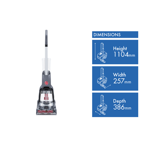 Easily tackle pet messes and everyday stains with the Hoover PowerDash Compact Carpet Washer FACCW21R0K. A powerful compact carpet cleaner including the PowerSpin Pet Brush Roll providing a powerful clean for high traffic areas and small spaces. This easy to use pet carpet cleaner offers a compact and lightweight design for efficient cleaning and storage. Plus the PowerDash is designed with HeatForce power to deliver even faster drying for any space ideal for any pet home's carpet cleaning needs.