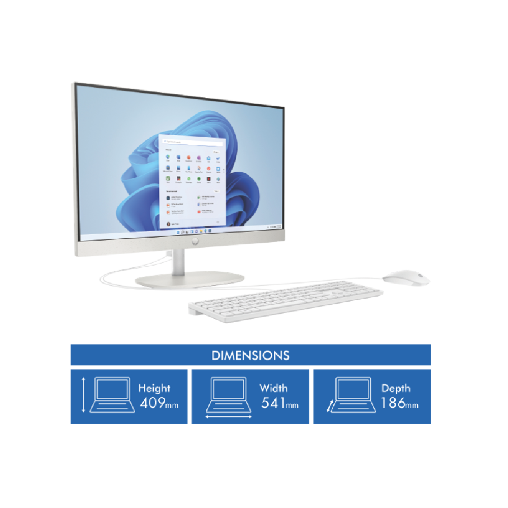 Experience seamless computing with the sleek and stylish HP 23.8 Ryzen 5 16GB 512GB All-In-One desktop computer. This powerful AIO PC boasts a vibrant 23.8-inch Full HD IPS touchscreen display with anti-glare technology delivering stunning visuals at a resolution of 1920 x 1080 pixels. Under the hood the efficient AMD Ryzen 5 7520U processor and 16GB of memory ensure smooth multitasking and responsive performance for your everyday computing needs. With a generous 512GB of storage you'll have ample space for your files media and applications. The integrated AMD Radeon Graphics provide impressive visuals for multimedia enjoyment. Stay connected with a range of ports including USB Type-C USB Type-A and an RJ-45 Ethernet port while the Realtek RTL8852BE Wi-Fi 6 (2x2) and Bluetooth v5.3 offer fast and reliable wireless connectivity. Enjoy crystal-clear video calls with the built-in HP True Vision 720p HD webcam and immerse yourself in rich audio through the dual 2W speakers. This all-in-one computer comes with Windows 11 Home pre-installed providing a user-friendly and intuitive operating system right out of the box. The manufacturer's part number for this product is 94A65PA. Elevate your computing experience with the HP 23.8 Ryzen 5 16GB 512GB All-In-One desktop backed by a 1-year manufacturer's warranty for added peace of mind.