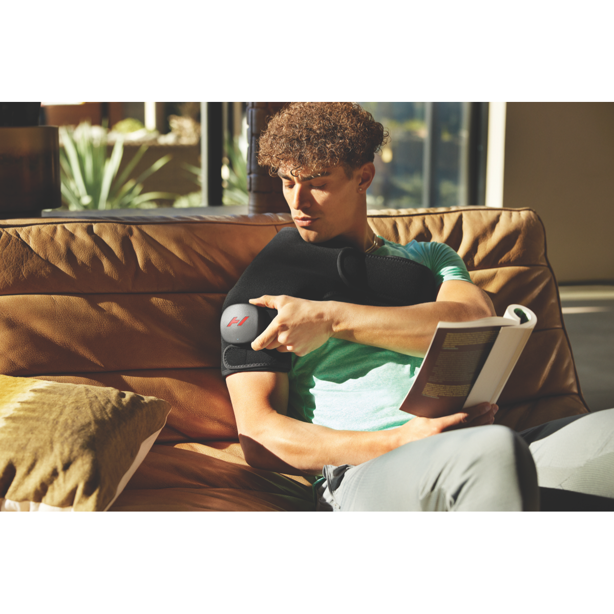 Recover faster and get back in the game with the Hyperice Venom 2 Right Shoulder. Crafted from premium plush neoprene this innovative shoulder wrap combines the power of heat therapy and vibration massage to target sore overworked shoulder muscles. With a built-in heating element reaching up to 160°F (71°C) and a digital touchscreen to control settings the Venom 2 helps improve circulation and ease inflammation in the shoulder area. Its patented thermal technology and intuitive design provide effective convenient relief after tough workouts or a long day hunched over your computer. Lightweight at just 1.5kg the Venom 2 Right Shoulder goes wherever you need targeted heat and massage for your upper body recovery routine. Connect it to the Hyperice app via Bluetooth to customize and track your treatments. With regular use expect to see reduced muscle fatigue increased mobility and faster recovery time for your shoulder. The manufacturer's part number for this product is 22200-001-22. Give your shoulders the rehab they need to keep you performing at your peak by picking up the Hyperice Venom 2 Right Shoulder today.