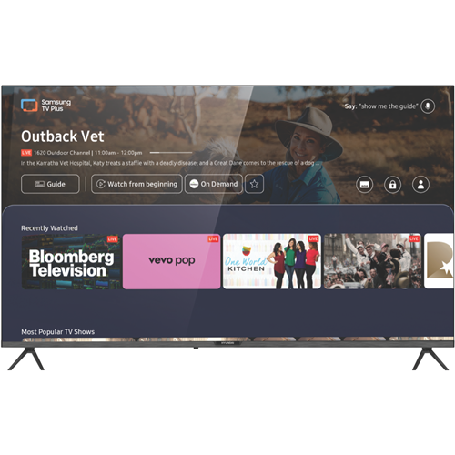 • Tizen Smart TV with Bluetooth remote and voice assistant