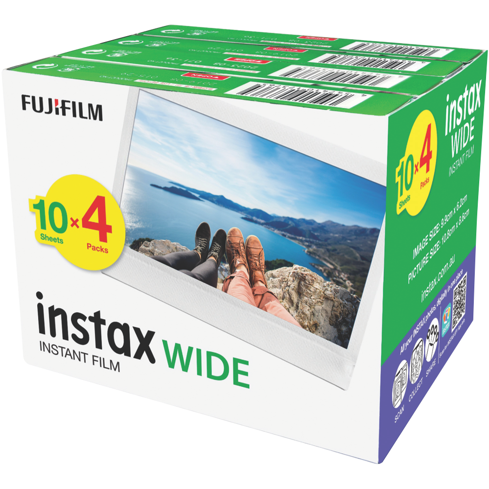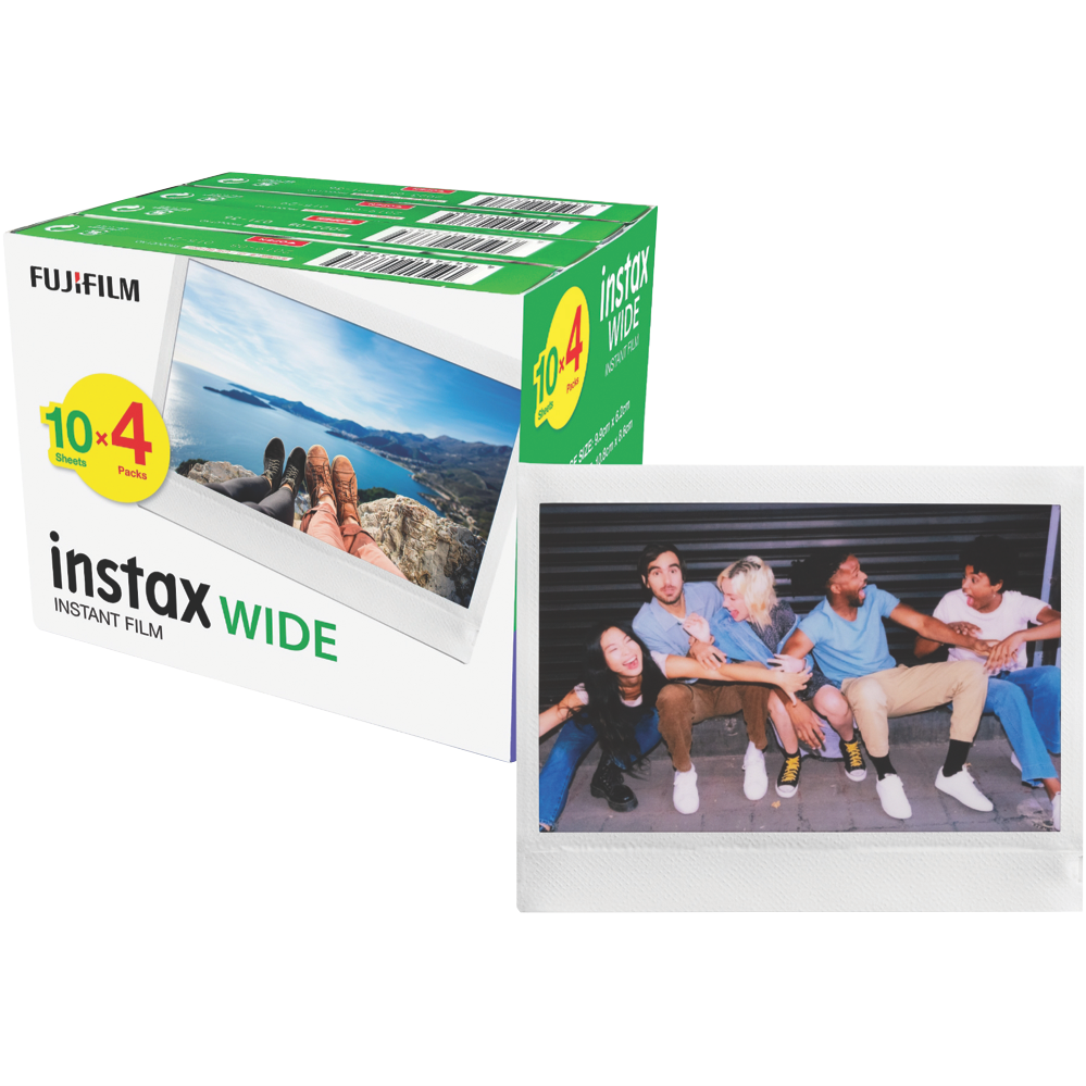 Capture your memories with this 40-pack of Wide Film for your INSTAX WIDE camera or printer. Each film sheet measures 108 x 86mm giving you plenty of space to showcase your favorite moments. The classic white border creates a timeless look for your instant photos. This replacement film works with all INSTAX WIDE models including the WIDE 400 WIDE Evo Link WIDE and older cameras in the range. Model 86440.