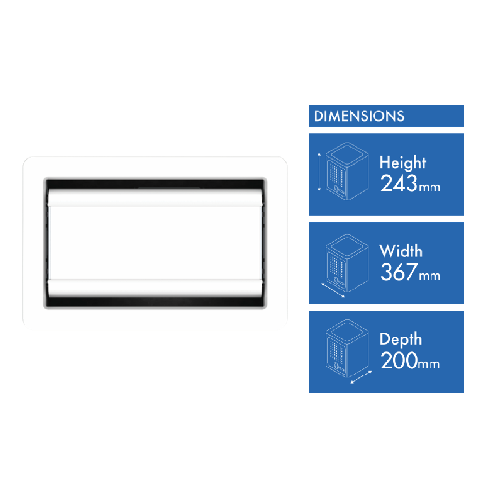 The Tastic Luminate Essential Vent & Light Module features a powerful bathroom ceiling exhaust fan and LED light. With its powerful airflow extraction the exhaust fan quickly removes steam from your bathroom laundry toilet or powder room effortlessly. Luminate Essential Vent & Light Module has an IPX4 rating making it suitable for above shower installation.