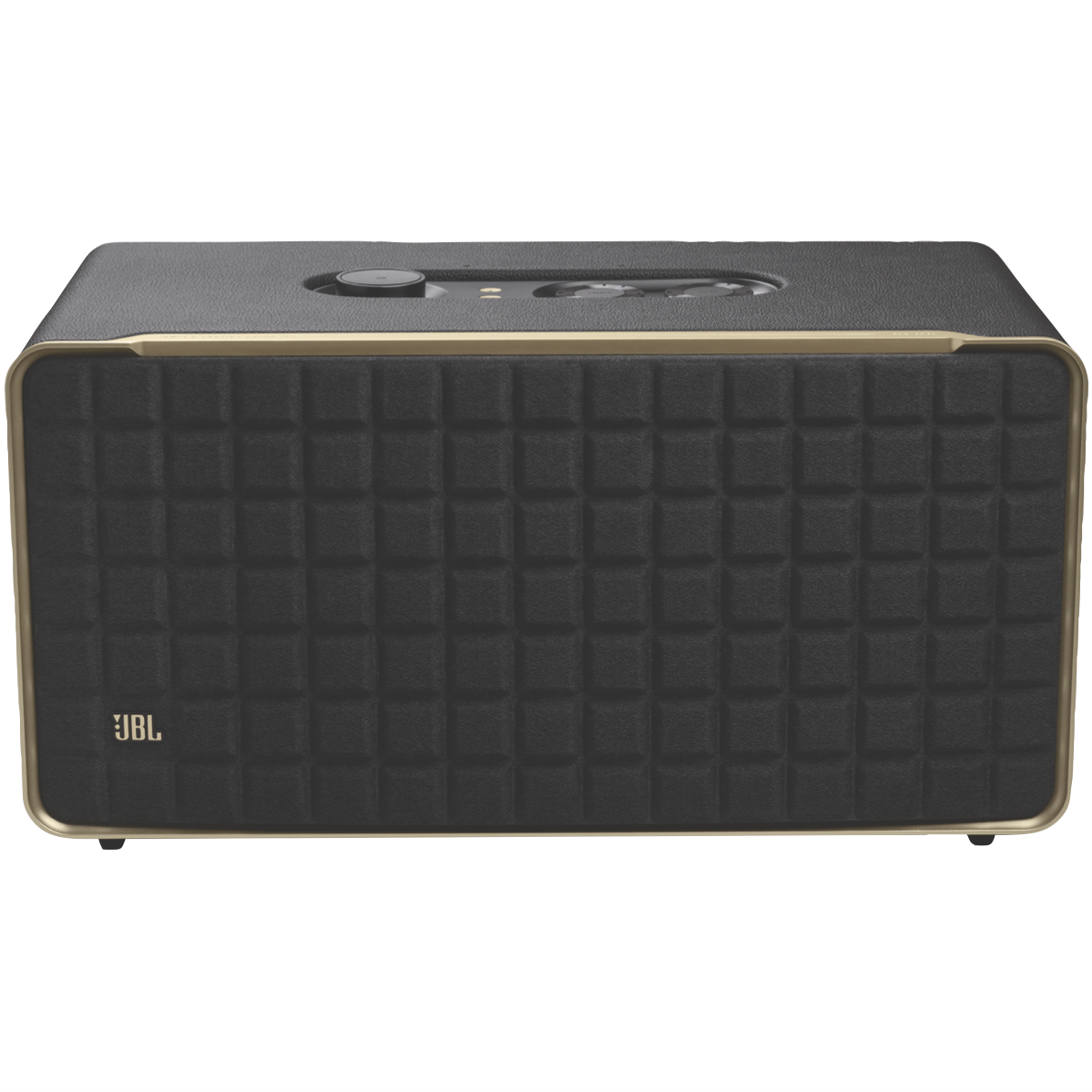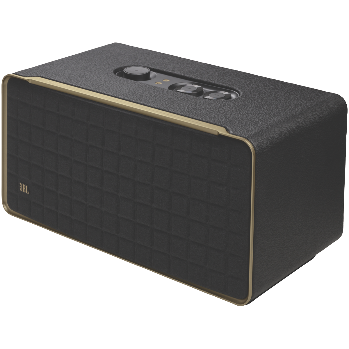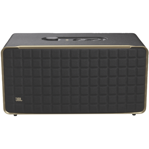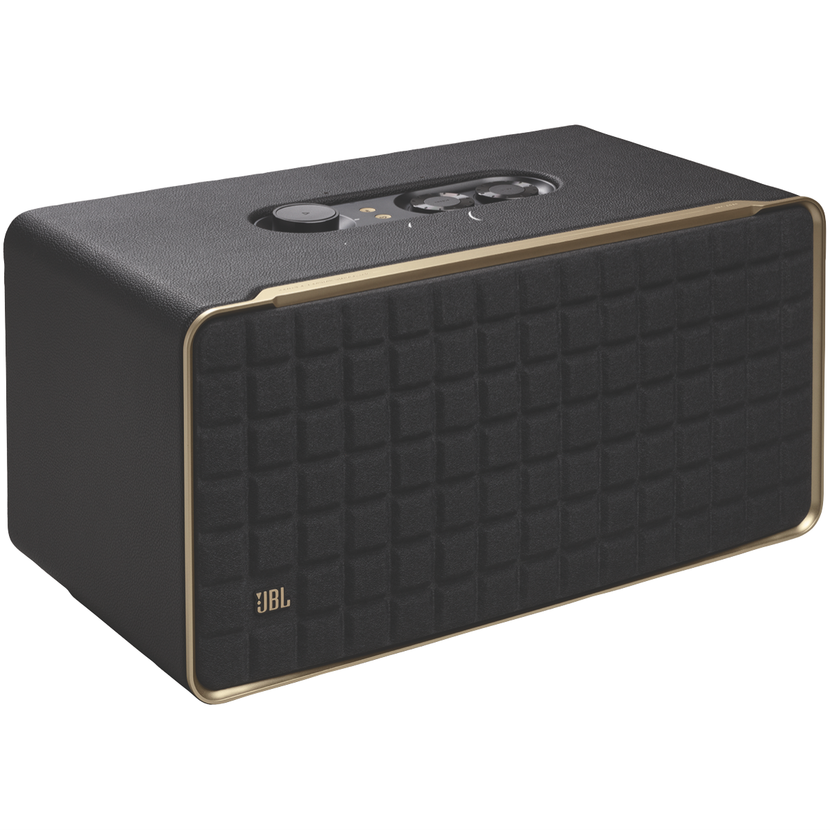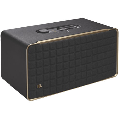 Additional Features Aluminium frame and custom leather enclosure give it a retro appeal, Features intuitive controls and the JBL One App (download required), so you can easily customise its settings
