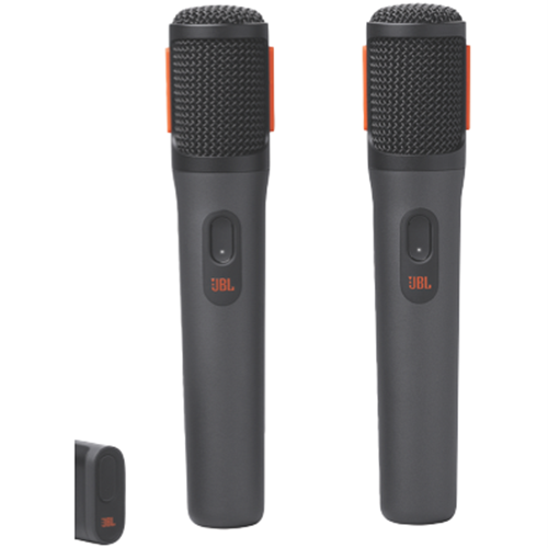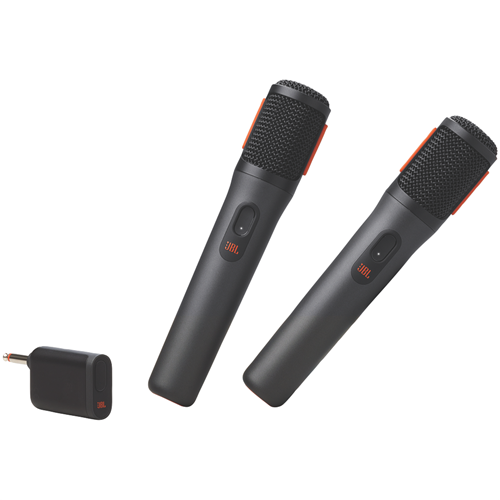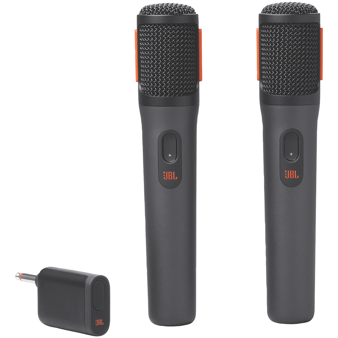 It s time for you to take center stage. JBL wireless mics deliver JBL Original Pro Sound with crystal clear vocal clarity and detail. Sound your best and hit the high notes with no distortion or delay. Just plug the wireless dual-channel receiver into your speaker turn on the mics and you re ready to shine. Easy replaceable AA batteries so you can belt every note until the sun comes up. Time for a duet? You ll hear both mics blended perfectly through your speaker. Get ready for the spotlight