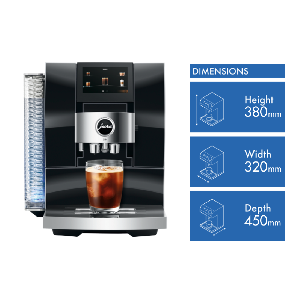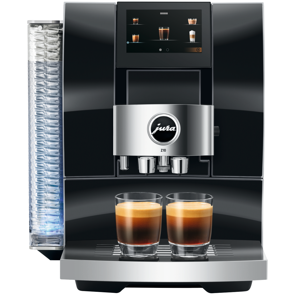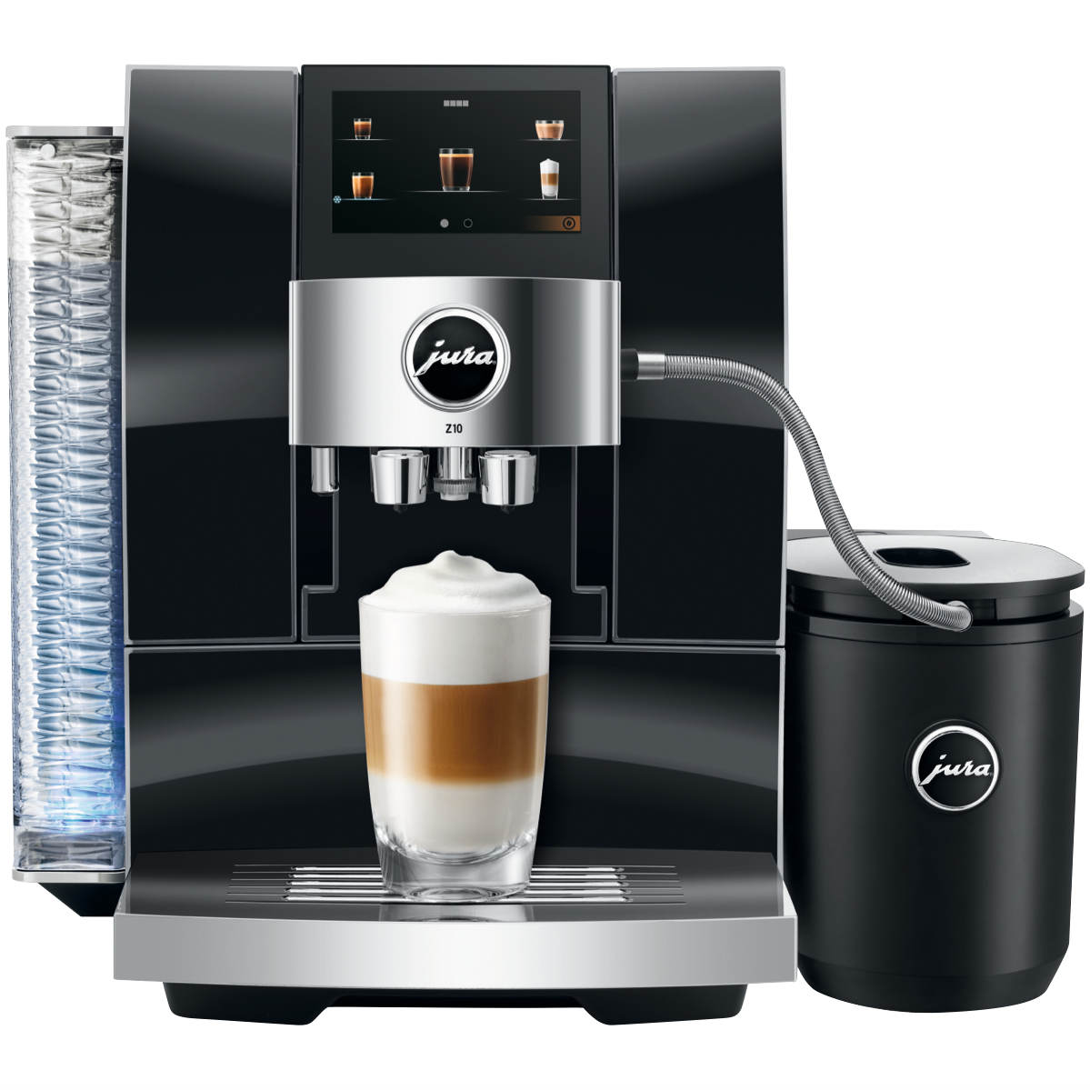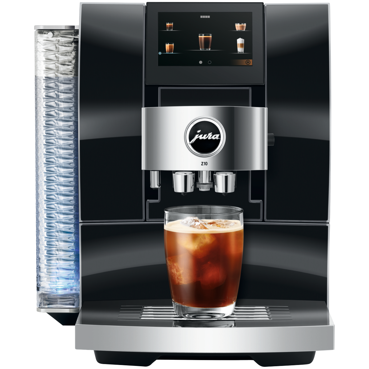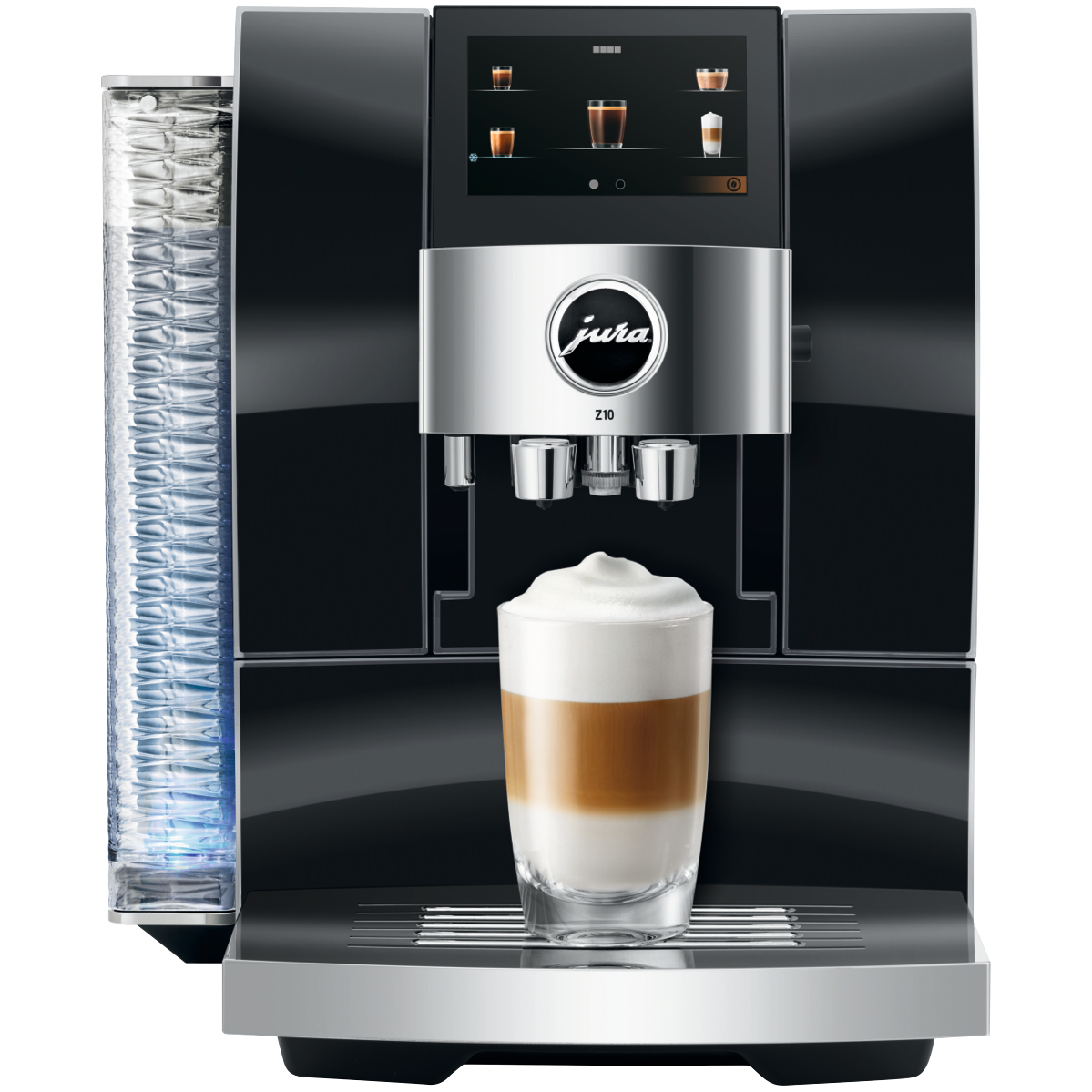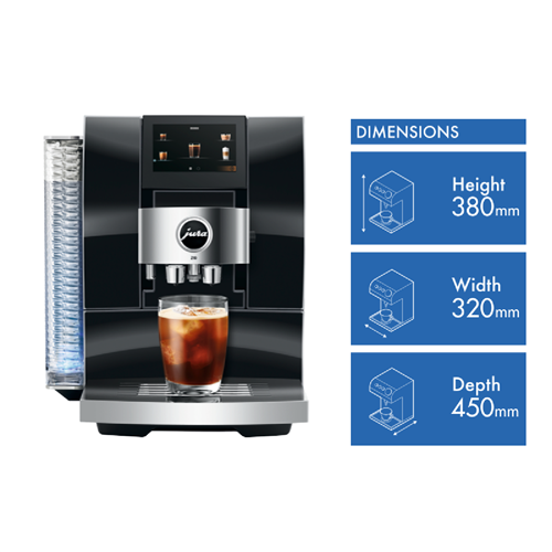Experience the taste of a true barista-quality coffee every morning with the JURA Z10 Diamond Black Automatic Coffee Machine. With its sleek high-quality design featuring a convex-concave front panel and beautifully finished details like the wave-shaped 2.4 litre water tank this automatic coffee maker takes your kitchen decor up a notch while delivering delicious coffees milk drinks and more at the touch of a button. The built-in burr grinder with Product Recognising Grinder (P.R.G.) technology and 3D Brewing System craft up to 32 different speciality coffees perfectly. The programmable milk frother with 10 temperature settings let you make everything from hot chocolate to iced coffee. With quick fuss-free operation via the smart TFT display active bean monitoring thermoblock heating and automatic milk to milk foam switchover the JURA Z10 Diamond Black makes it easy to create barista-style drinks at home. So why not treat yourself to a delicious cafe-quality coffee just the way you like it every morning. The manufacturer's part number for this product is 15423. Bring the joy of great coffee into your kitchen with the JURA Z10 Diamond Black Automatic Coffee Machine.