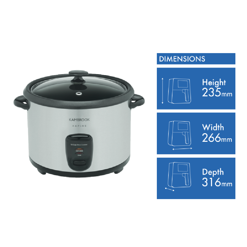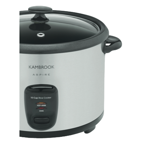 Cook fluffy delicious rice for the whole family with the Kambrook 10 Cup Rice Cooker. This stainless steel rice cooker lets you prepare perfect rice every time. With a generous 10 cup capacity you can cook rice for gatherings and meals throughout the week. The intuitive menu programs make cooking all varieties of rice simple. Just add rice and water select your settings and let the cooker do the work. The glass lid allows you to monitor cooking without releasing heat or moisture. When rice is done the cooker automatically switches to keep warm mode so your rice stays piping hot and ready to serve. The nonstick cooking bowl ensures easy cleanup. This versatile appliance can also be used to steam vegetables seafood or poultry. The sleek stainless steel exterior looks great on any countertop. With a 1 year warranty you can trust this rice cooker to deliver delicious fluffy rice for years to come. The manufacturer's part number for this product is KRC350BSS. Shop now and enjoy perfectly cooked rice anytime.