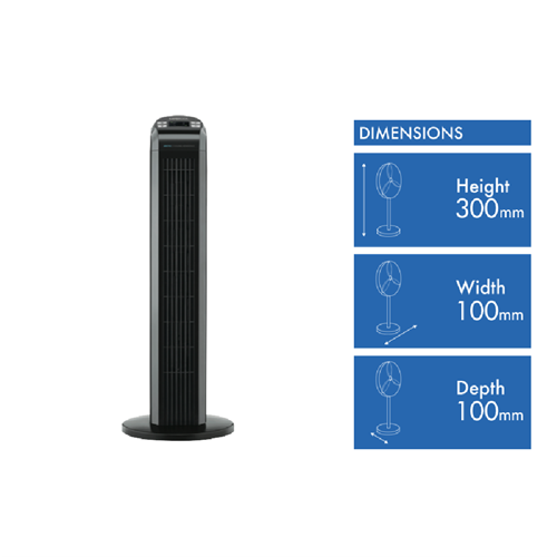 Beat the heat with the Kambrook 77cm Arctic Black Tower Fan. This sleek black tower fan features three speed settings and a handy remote control so you can adjust airflow from across the room. With a powerful 77cm blade diameter this fan generates a strong and steady stream of cool air to keep you comfortable. The carry handle at the rear makes it easy to move the 2.7kg fan from room to room or take it with you on camping trips. The tower design means you can place this fan in a corner to conserve floor space. The Kambrook Tower Fan is perfect for cooling down medium to large rooms in your home or office. With its energy-efficient motor this fan will help cut down on your electricity bills this summer. Don't sweat through another hot day order the reliable Kambrook Arctic Black Tower Fan today and stay cool all season long. The manufacturer's part number for this product is KTF816BLK.