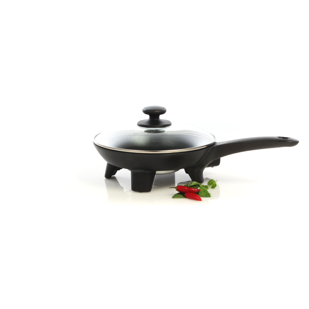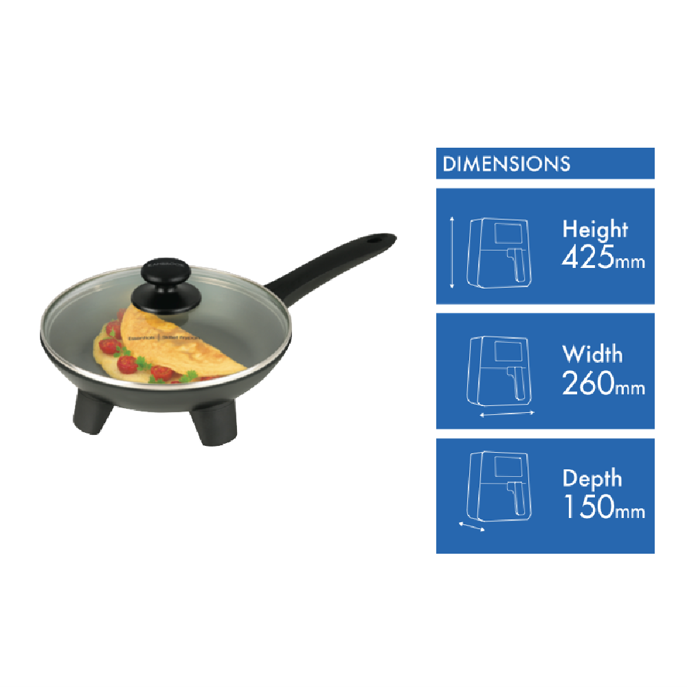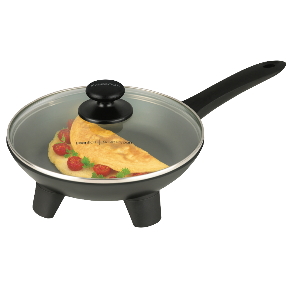 Sizzle up quick easy meals with the Kambrook Essentials Skillet Frypan. This 1100W electric frypan features a large 24cm non-stick pan and tilting lid providing ample cooking space to prepare delicious breakfasts lunches and dinners for the whole family. The integrated steam vent allows excess moisture to escape while the tempered glass lid lets you check on food without losing heat. With 10 adjustable temperature settings you can precisely control cooking and avoid burning. The durable non-stick coating also makes cleaning a breeze after meals. Bring convenience to your kitchen with the Kambrook skillet's 1 year warranty. The manufacturer's part number for this product is KEF90BLK. Consider the Kambrook Essentials Skillet Frypan for your next appliance purchase.
