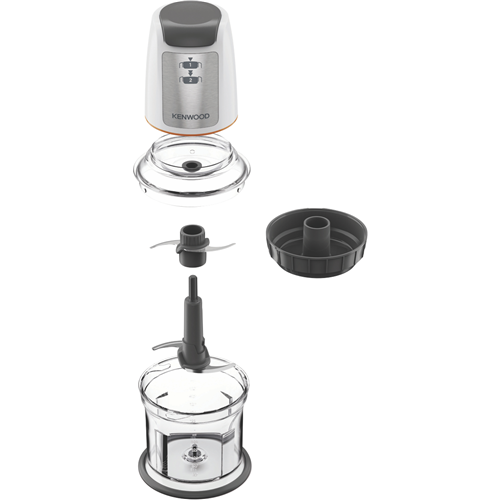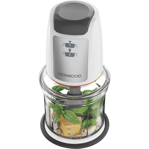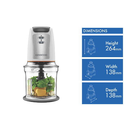 Streamline food preparation with the Kenwood Easy Chop 500ml Chopper. This compact white chopper powered by 500 Watts features a quad blade system to quickly and easily chop blend mix and puree ingredients in seconds. With one-touch operation two speed settings anti-slip base and 0.5 litre capacity you can prep small batches of sauces dips and more in a flash. The dishwasher safe detachable bowl ensures fuss-free cleaning. Designed for safety and convenience it has a lid locking system to prevent spills and a tidy cable wrap for easy storage. Whether you're whipping up a quick weekday dinner or prepping ingredients for your next party this versatile kitchen helper makes food prep fast and fun. The manufacturer's part number for this product is CHP61100WH. Seize the chance to simplify mealtimes with the Kenwood Easy Chop today.