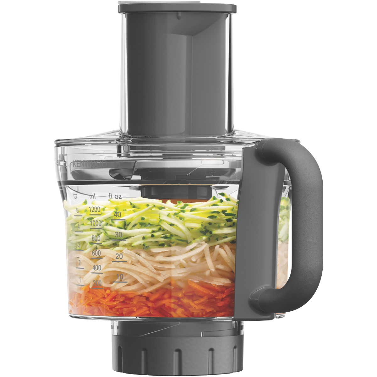 A quality kitchen companion the Kenwood Food Processor Attachment brings convenience and versatility to your meal prep. With a generous 1.2 litre capacity bowl and 6 handy discs included this attachment helps you slice grate knead and blend ingredients with ease. Whether you're preparing family feasts or quick weeknight dinners the food processor attachment saves you time and effort in the kitchen. At 178mm high 244mm wide and 250mm deep it fits most Kenwood mixers and weighs just 2.2kg for portability. Covered by a 1 year warranty for peace of mind. Transform your Kenwood mixer into a food prep powerhouse with the Kenwood Food Processor Attachment KAH65000PL.