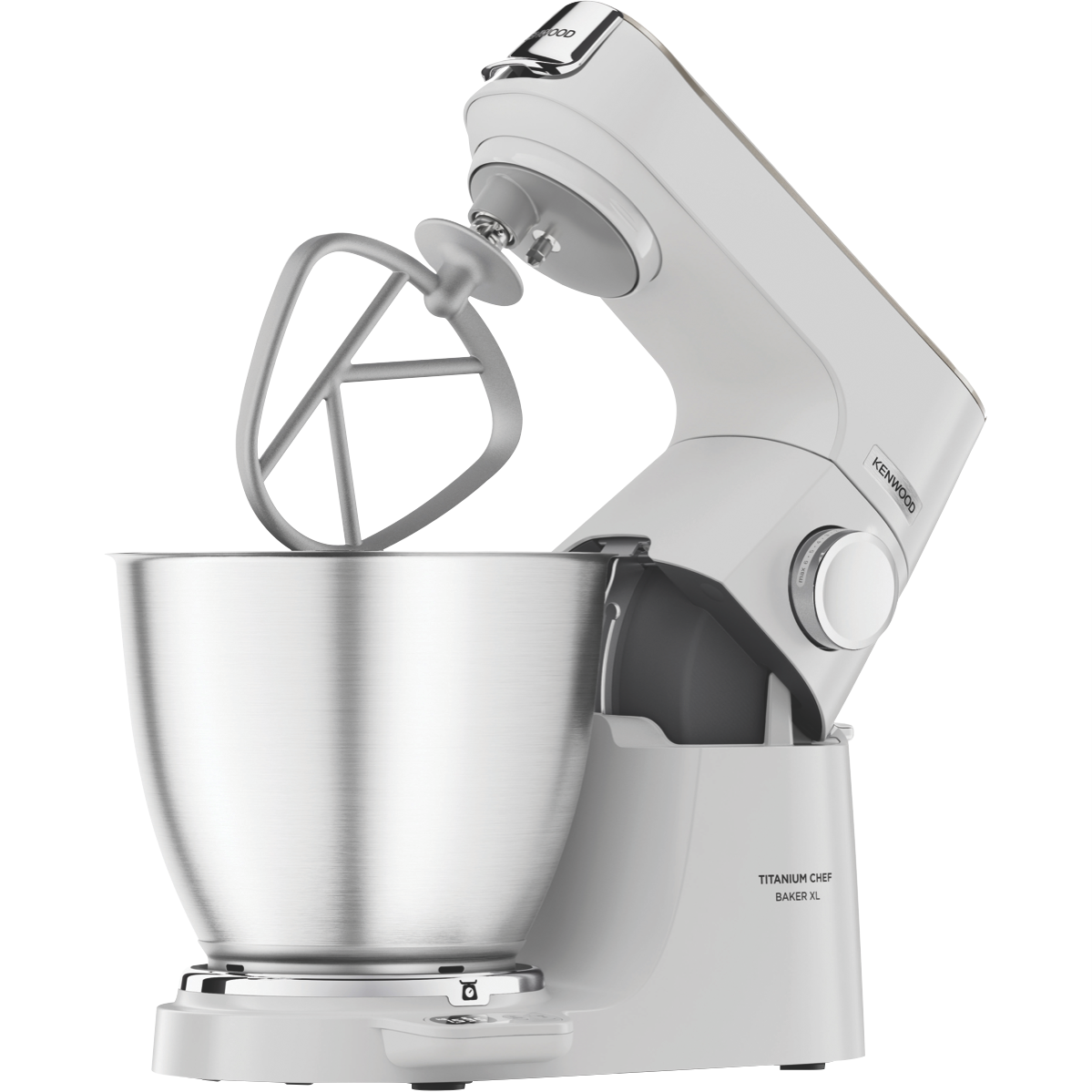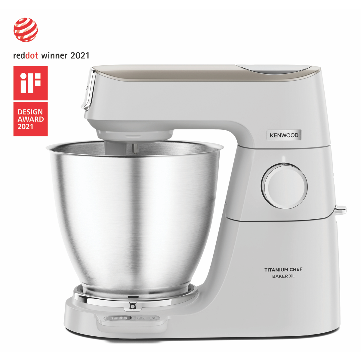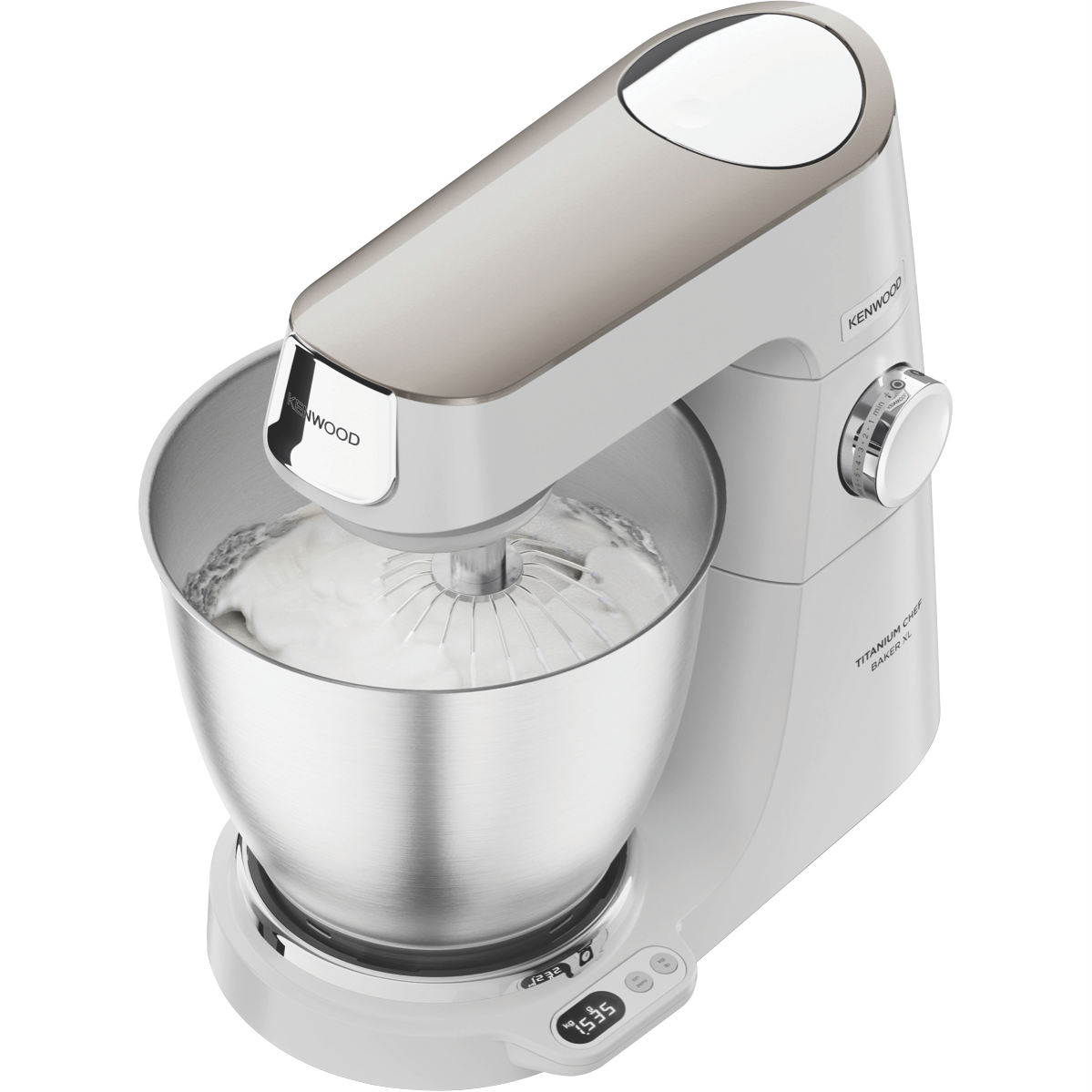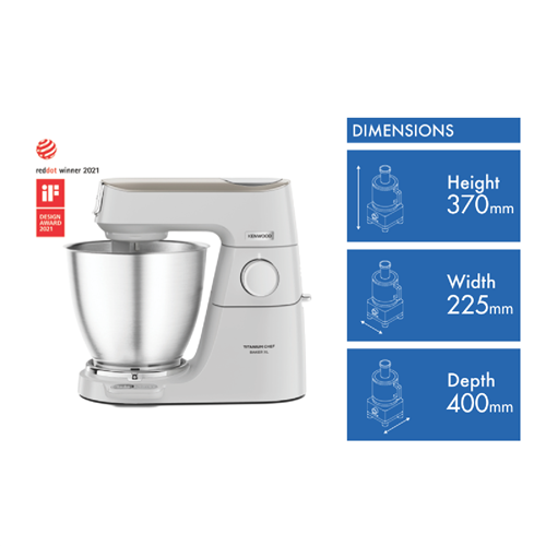 The Kenwood Titanium Chef Baker XL White is highly customisable and powerful ready for all the breads cookie doughs and cakes you could ever dream of. Put the scales away with Kenwood's built in Easy Weigh system allowing you to weigh straight into any optional attachment like a blender or juicer with no mess or fuss. Turn up your kitchen with a digitally controlled 1200W motor Light Lift head making adding to your mix extremely easy and planetary mixing ensuring the bowl is perfectly scraped and combined just like hand mixing. Get around the 25 optional attachments not including the stellar included whisk dough tool and K-beater but definitely including PopTops allowing you to customise your stand mixer's top panel colour for a truly great look in the kitchen.