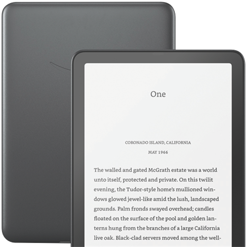 Enjoy your favorite books anywhere with this 7-inch Kindle Paperwhite Signature Edition. The sleek metallic black design weighs just 214g and fits comfortably in your hands for hours of reading. With a massive 32GB storage you can build an entire digital library without running out of space. The battery is seriously impressive - a single charge lasts up to twelve weeks based on half an hour of daily reading. It fully charges in under 2.5 hours using a 9W USB power adaptor or compatible wireless charger. Plus you'll get free cloud storage for all your Amazon content. Everything you need comes in the box: the Kindle itself a USB-C charging cable and Quick Start Guide all backed by a 1-year warranty. Part number: B0CFPHTMDX.