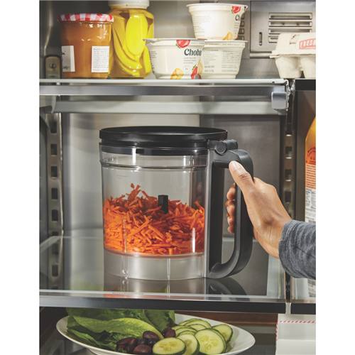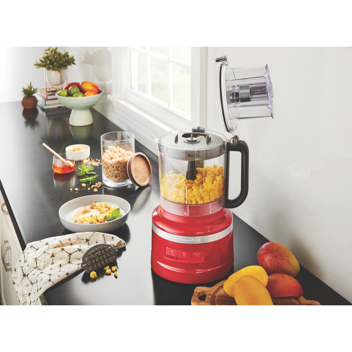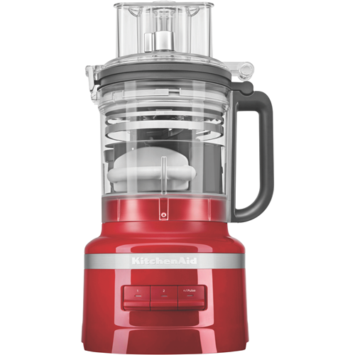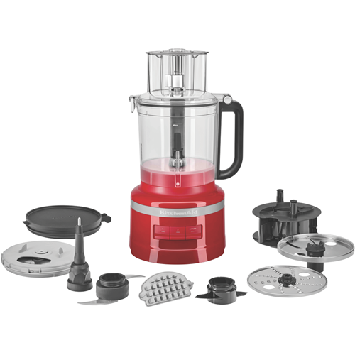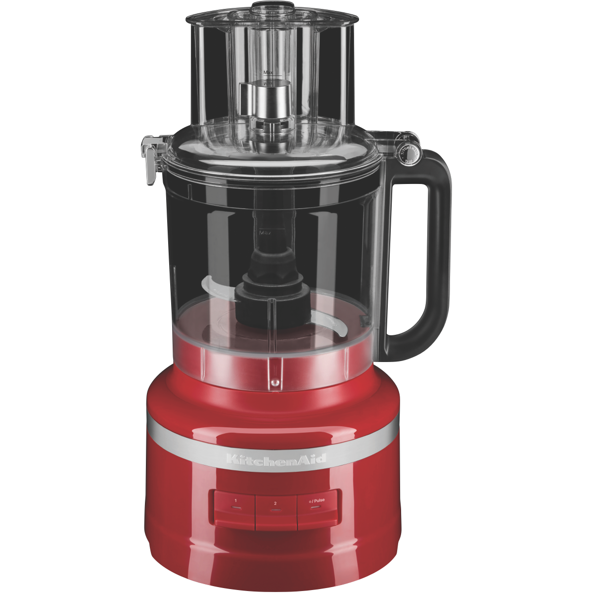 With its Empire Red finish the KitchenAid 13 Cup Food Processor brings a bold vibrant flair to your kitchen. This versatile appliance makes quick work of all your food prep needs with its powerful 400 watt motor and 3 speed settings - high low and pulse. The generous 13 cup BPA-free Tritan work bowl accommodates large batches while the multi purpose blade dough blade adjustable slicing options and dicing kit ensure you can slice shred knead and dice to your heart's content. With an all-in-one storage solution each attachment has its own spot for fuss-free organization. Designed for convenience the work bowl lid and accessories are all dishwasher safe. Measuring 464mm high 222mm wide and 222mm deep and weighing 4.5kg this food processor will fit nicely on your kitchen counter ready for the next culinary adventure. Backed by KitchenAid's 2 year warranty the 13 Cup Food Processor is built to deliver lasting performance. The manufacturer's part number for this product is 5KFP1319AER. Bring home the versatility of the KitchenAid 13 Cup Food Processor today.