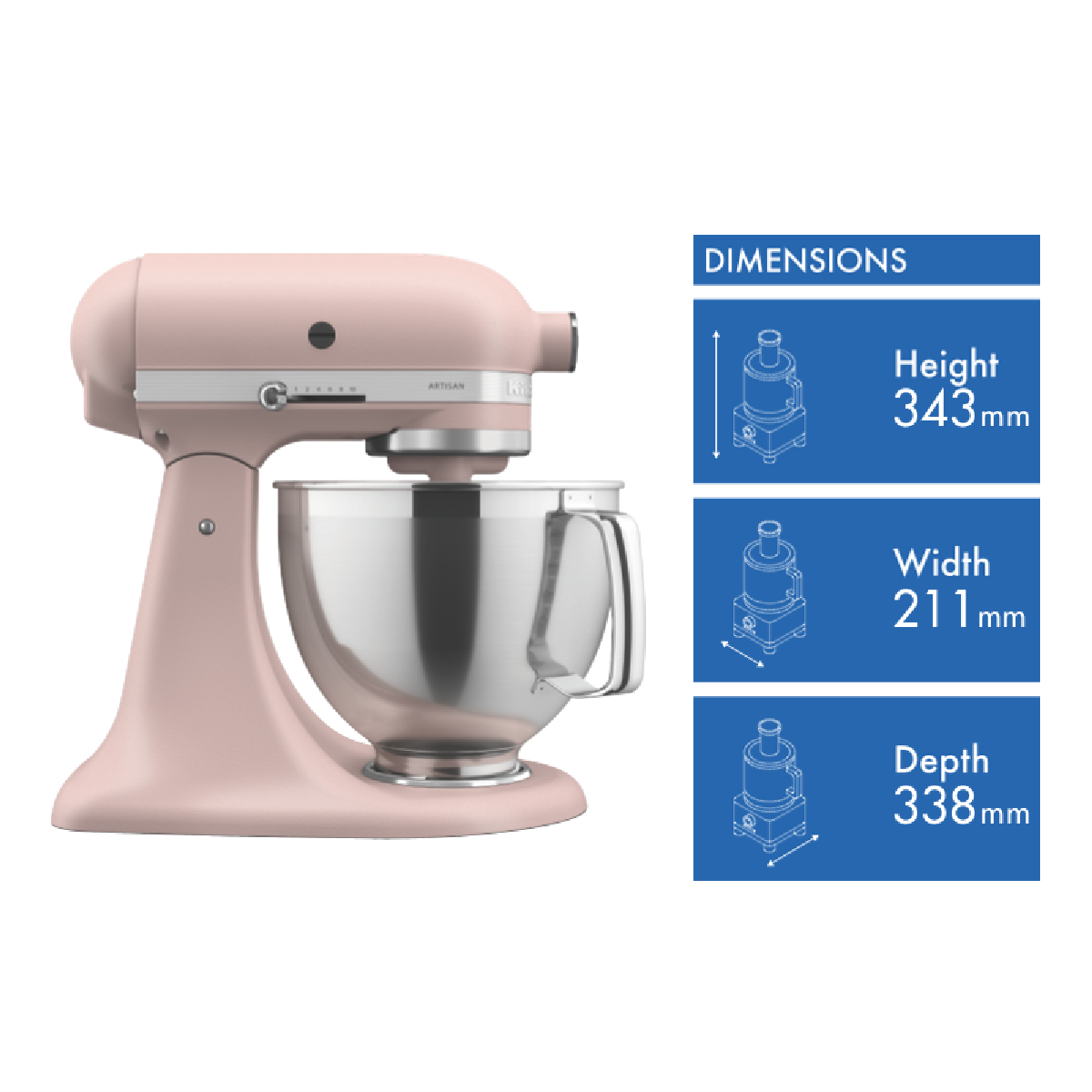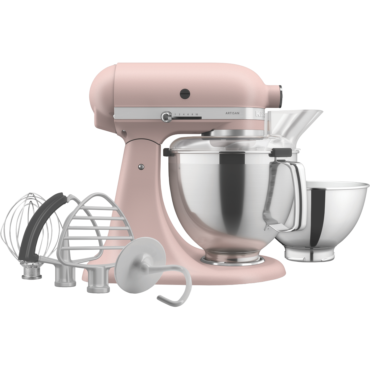 The KSM195 KitchenAid Artisan Series Tilt-Head Stand Mixer with Premium Accessory Pack has the capacity and tools for every occasion. This model includes both a 2.8L and 4.7L bowl so you can do more - mix up batter in one and then whip up a silky frosting in the other. In addition the exclusive accessory pack includes a flex edge beater pastry beater dough hook wire whip and redesigned secure fit pouring shield. This durable tilt-head stand mixer was built to take it all on and features 10 speeds to gently knead thoroughly mix and whip ingredients for a wide variety of recipes