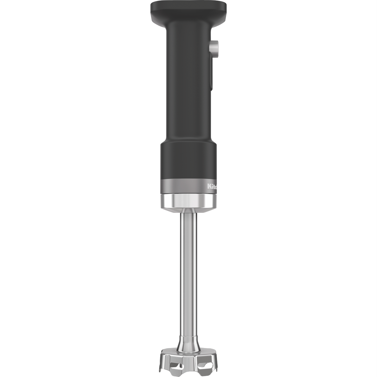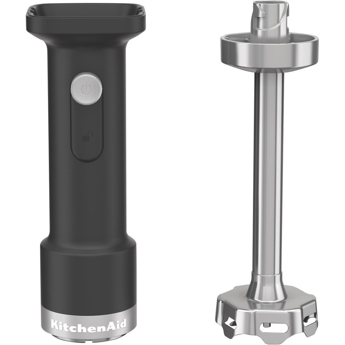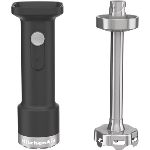 Tired of tangled cords while blending? KitchenAid's Go Cordless Hand Blender (5KHBRV00ABM) in sleek matte black offers the freedom to mix purée and chop anywhere. With three speeds and a removable 7 blending arm featuring a 4-point stainless steel blade you can tackle any recipe. The 700ml BPA-free blending jar with lid and removable pan guard make blending a breeze while the top-rack dishwasher-safe accessories simplify cleanup. Powered by a rechargeable 10.8V max lithium-ion battery this hand blender delivers cordless convenience in a compact design. Backed by a 1-year manufacturer's warranty.