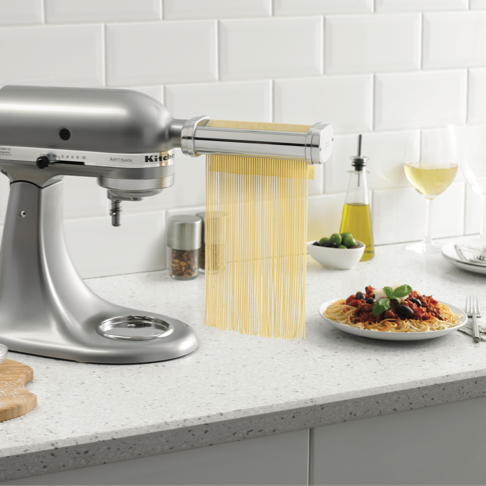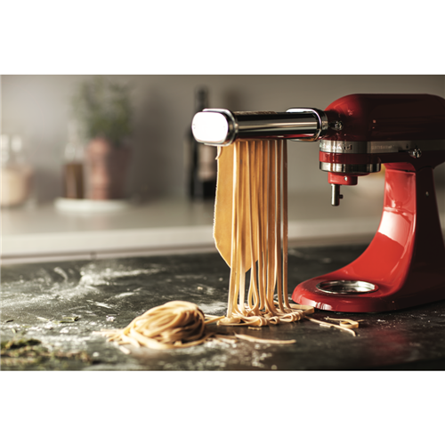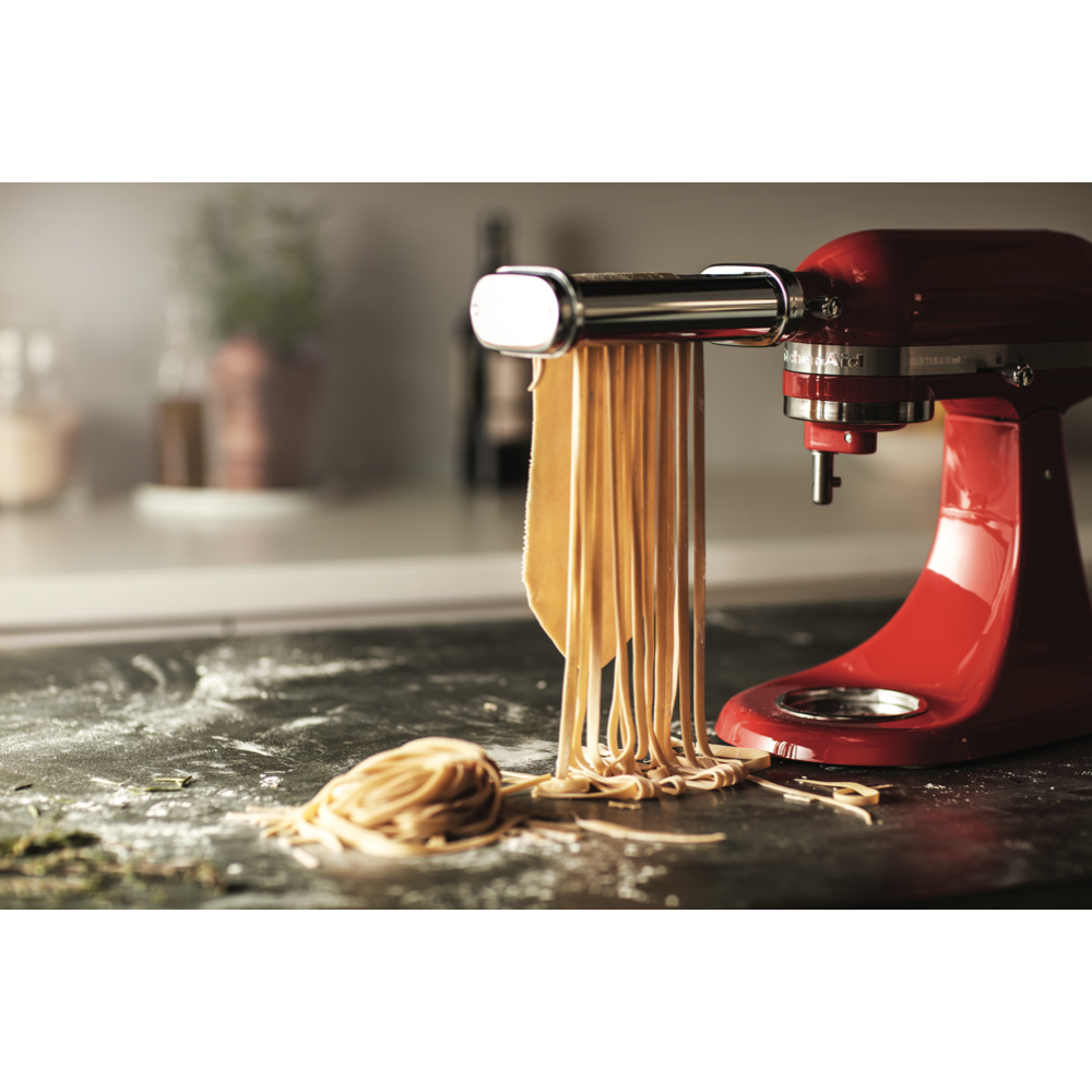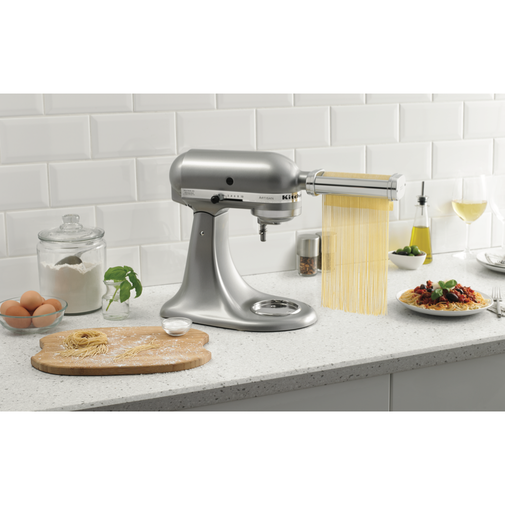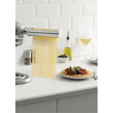 Make pasta night a breeze with the KitchenAid 3 Piece Pasta Attachment Set. This stainless steel set allows you to create restaurant-quality pasta from the comfort of your own home. With the pasta sheet roller simply feed dough through to flatten and thin it out. Then use the spaghetti and fettuccini cutters to cut the dough into perfect noodles. The possibilities are endless with this set - make lasagne sheets tagliatelle ravioli and more. Crafted from durable stainless steel these attachments are designed for years of pasta making. All attachments are dishwasher safe for easy cleanup. Transform your KitchenAid stand mixer into a pasta extruder and enjoy fresh homemade pasta any night of the week. With a one year warranty you can purchase with confidence. The manufacturer's part number for this product is KSMPRA.
