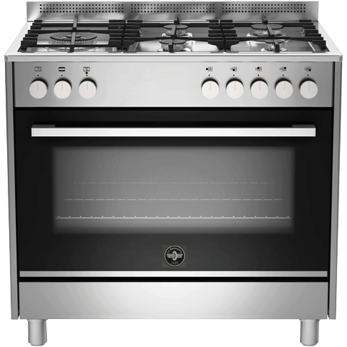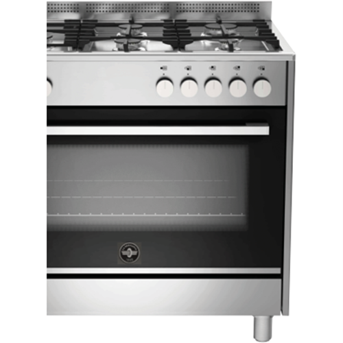 Step up your cooking game with the sleek stainless steel La Germania Futura 90cm dual fuel upright cooker. This powerful freestanding oven combines the precision of electric baking with the responsive heat control of five gas burners giving you the best of both worlds. With a generous 142 litre capacity eleven multifunctional oven modes and a durable build this La Germania model is designed to be the hardworking heart of your kitchen. Bake grill defrost and more with the versatile oven functions. The integrated electric grill means you can skip preheating and start grilling immediately. The five gas burners include a high-powered wok burner delivering the instant precise heat control gas is known for. With smart European styling and stainless steel finish this freestanding cooker will coordinate beautifully with modern kitchen decor. At 897mm wide this spacious La Germania upright cooker will fit most standard 90cm spaces. With the oven at eye level and easy to reach knobs cooking is comfortable and convenient. The two included oven shelves provide ample space for baking multiple dishes at once.Crafted in Italy to La Germania's high standards this dual fuel cooker comes with a 2 year manufacturer's warranty for peace of mind. Its eco-friendly design means the product and packaging are 99% recyclable. The manufacturer's part number for this product is TUS95L61LDX. Discover the joy of cooking with this versatile La Germania upright cooker today.