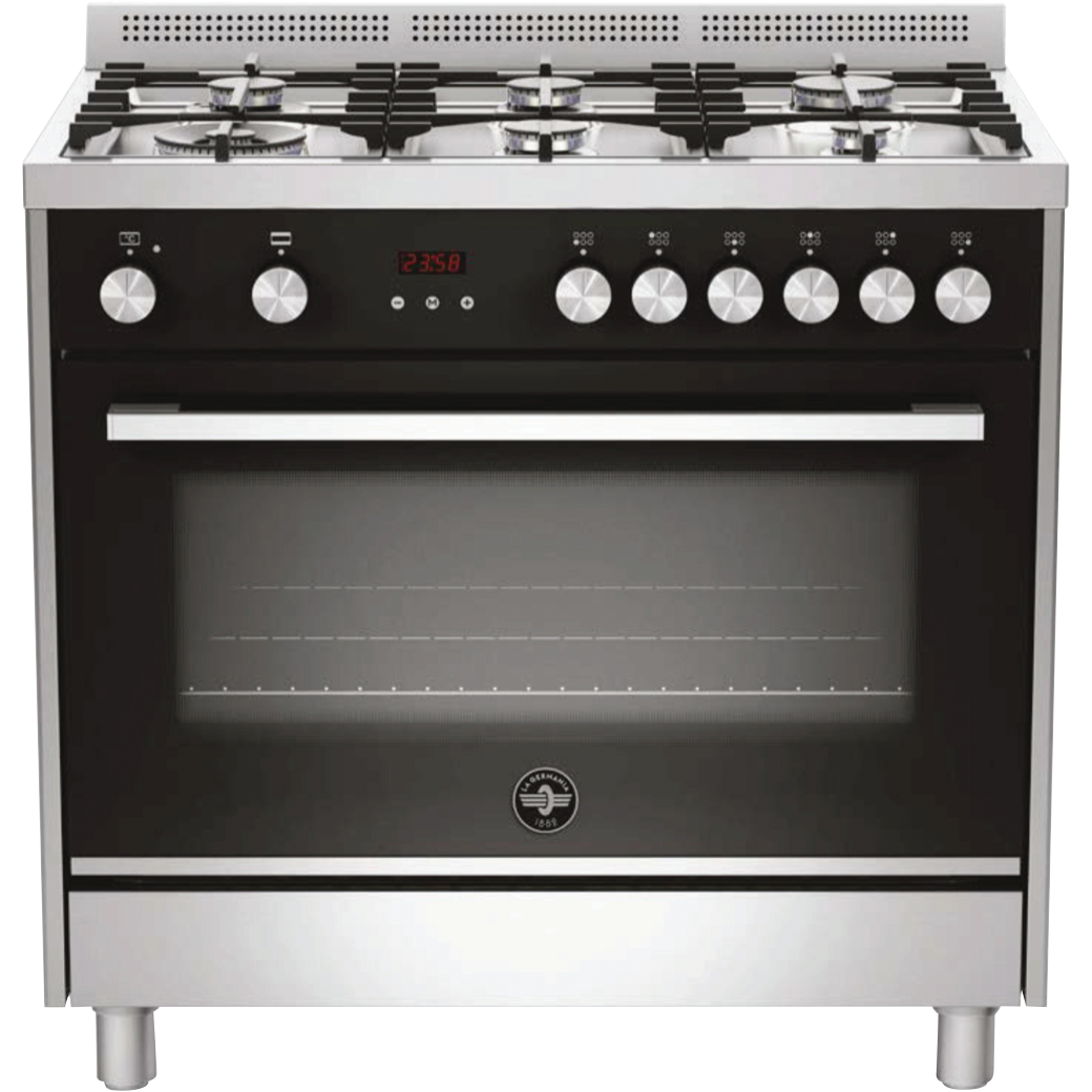 Step into the future of cooking with the La Germania Futura 90cm Dual Fuel Upright Cooker. This versatile stainless steel cooker blends modern style and functionality to make meal prep efficient and enjoyable. The spacious 142L electric oven features 11 modes like bake grill and convection to suit any recipe. Meanwhile the six gas burners ignite at a touch and deliver precise control over heat levels. With a sleek black finish and stylish control knobs this cooker adds a contemporary focal point to the kitchen. Users will love the ample cooking space handy accessories and smart safety features. Bring restaurant-quality results home with the La Germania Futura. This cooker's manufacturer part number is TUS96C61LBX. Discover how this cooker can make your cooking dreams a reality.