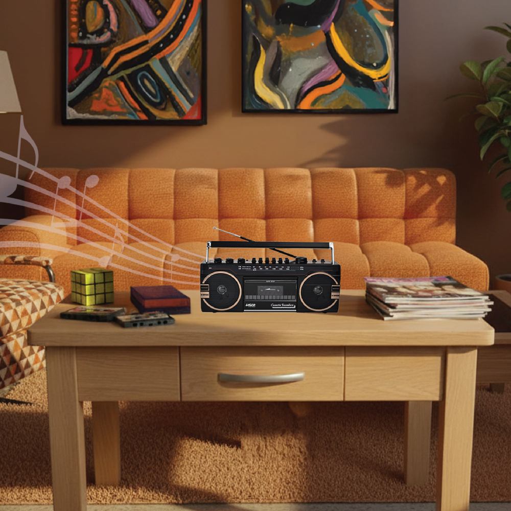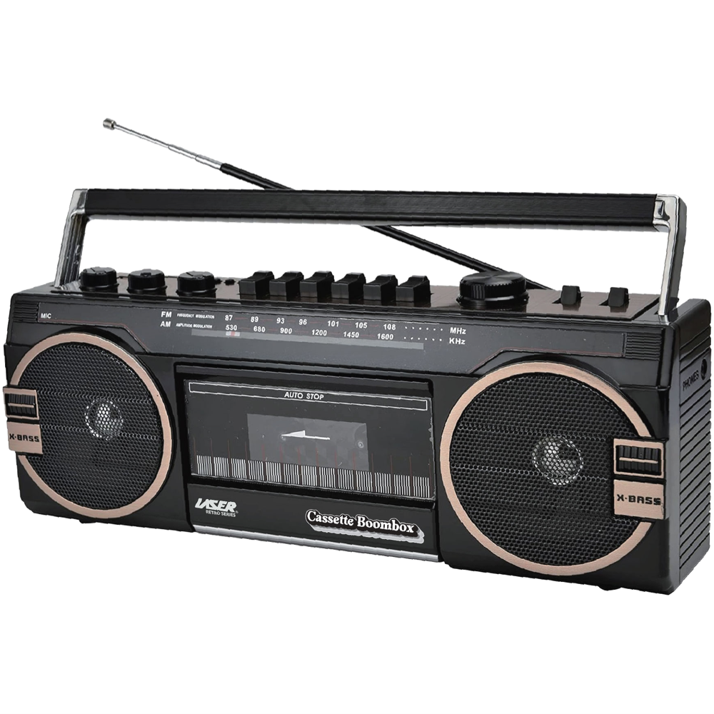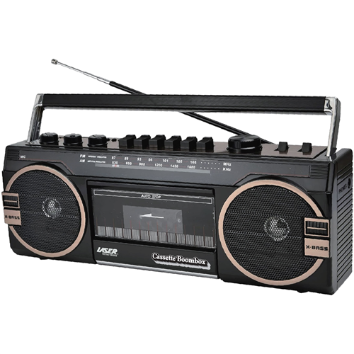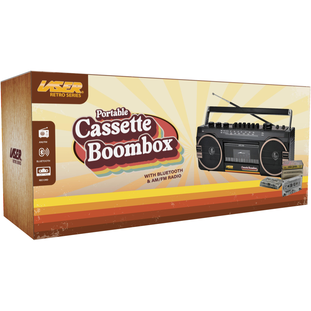 The Laser Retro Series Portable Cassette Boombox takes you back to the golden age of mixtapes reimagined for the modern listener. It s the charm of the 70s and 80s elevated with today s tech. Stream over Bluetooth record your own mixes or press play on your old favourites every beat feels fresh again