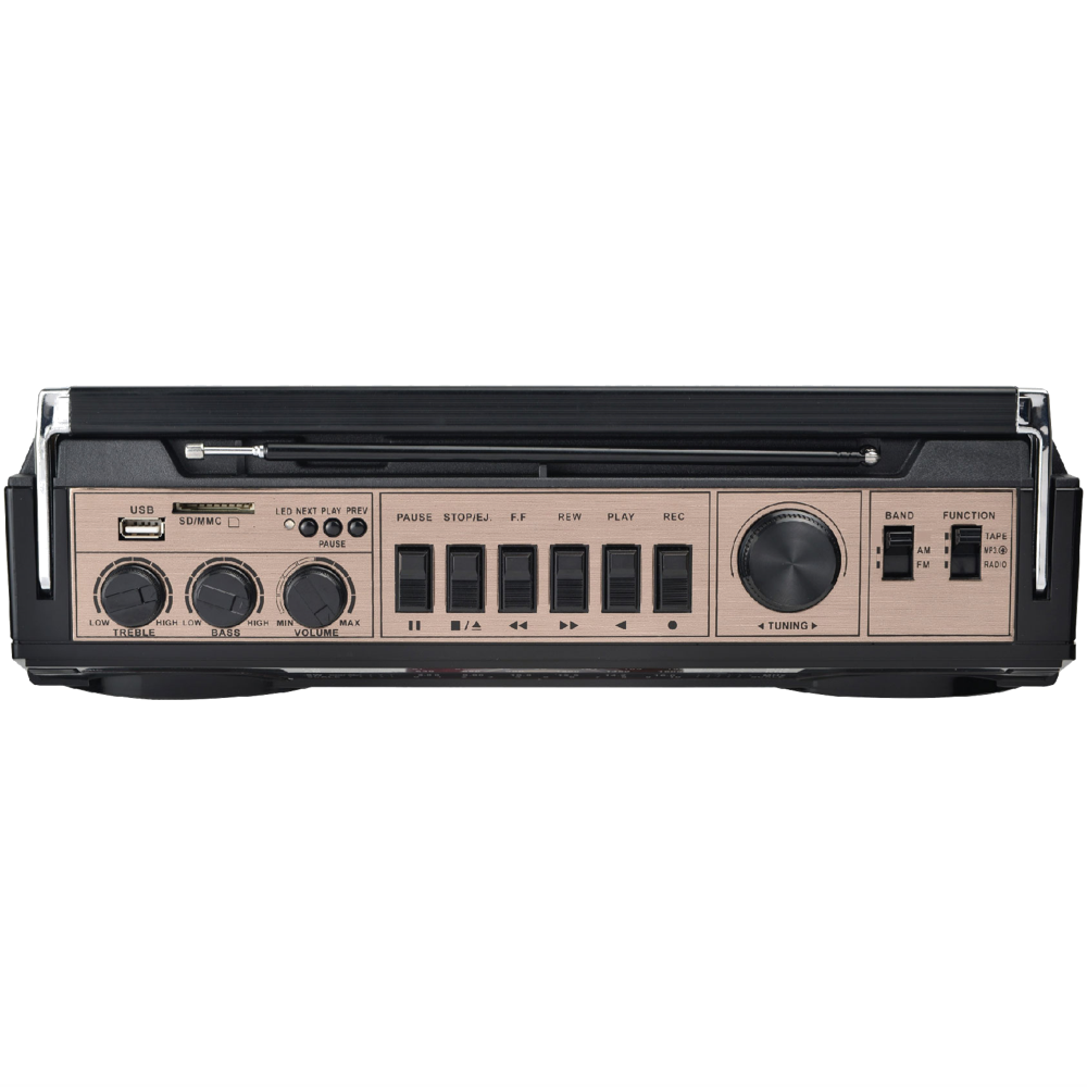Cassette. USB. SD card. Bluetooth. Radio. Whatever your collection looks like this boombox plays it all. From digital playlists to old-school tapes your music is always just a button away.