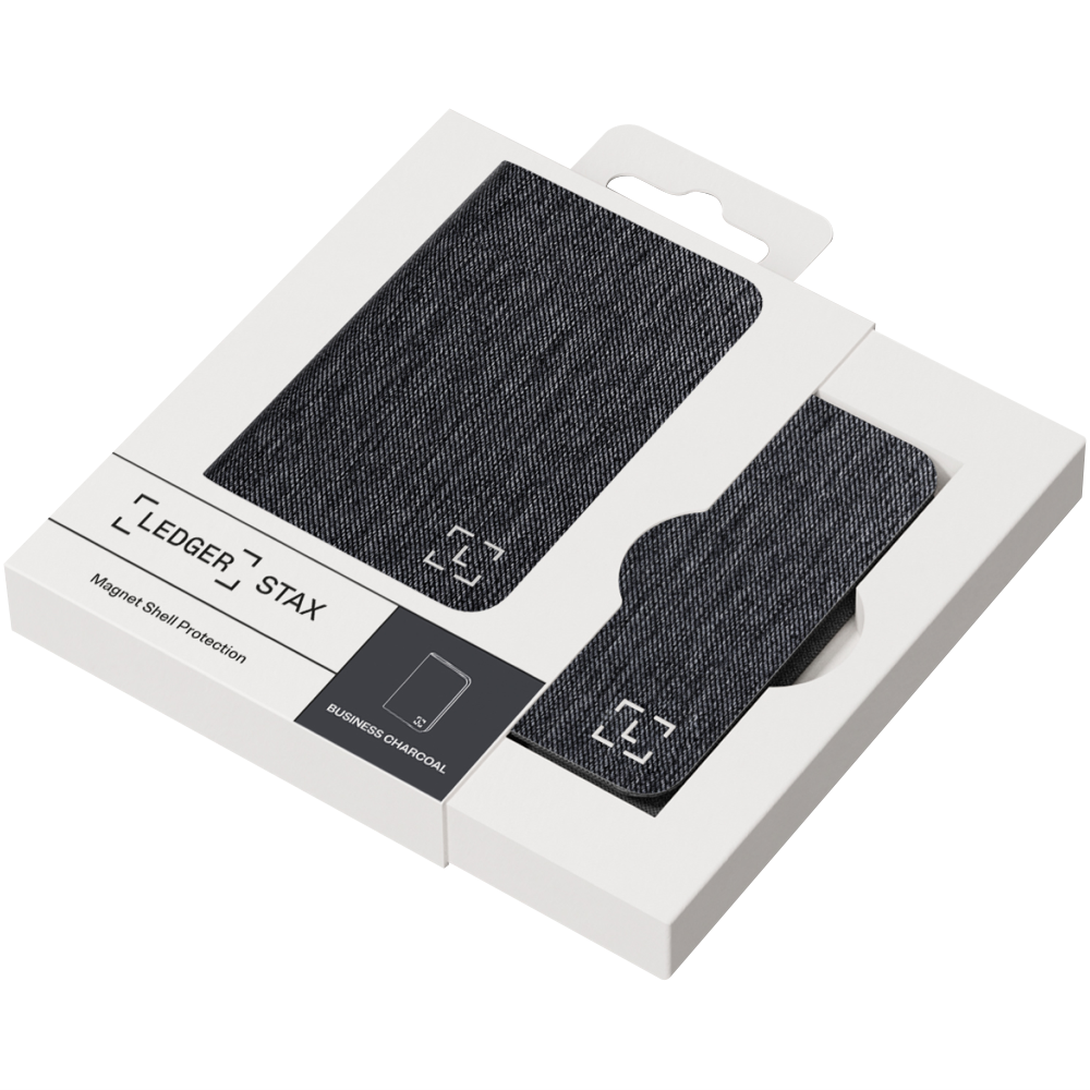 Keep your crypto wallet secure with this Stax Magnetic Shell in sleek charcoal. The durable case protects your valuable digital assets while maintaining a slim profile at just 38mm high and 81mm wide. It's lightweight too weighing only 70 grams so you can easily carry it wherever you go. The shell comes with everything you need for immediate use and is backed by a 1-year manufacturer's warranty. Model 255101.
