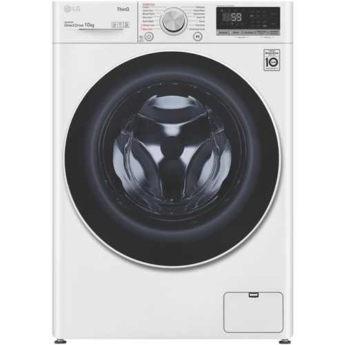 Ease your laundry days with the LG 10kg Front Load Washer. This white front loader makes washing simple and efficient handling loads up to 10kg with its range of 12 programs. The Cotton and Cotton Eco cycles tackle your regular washes while the Allergy Care program sanitizes for sensitive skin. Spin your laundry up to a quick 1400rpm to reduce drying time. The A.I. Direct Drive motor provides powerful and quiet performance. Steam technology penetrates deep to remove stains. Remotely start and monitor your wash via the LG ThinQ app. Use the delay start to schedule washing when it suits you. This washer is WELS 4.5 star water rated for efficiency using just 86 litres per wash. It also has a 4.5 star energy rating to save on running costs. With a width of 600mm height of 850mm and depth of 620mm the LG 10kg Front Loader fits most laundry spaces. LG provides a 2 year warranty for peace of mind. The manufacturer's part number for this product is WV5-1410W. Invest in this feature-packed front loading washing machine from LG for easy and effective laundry.