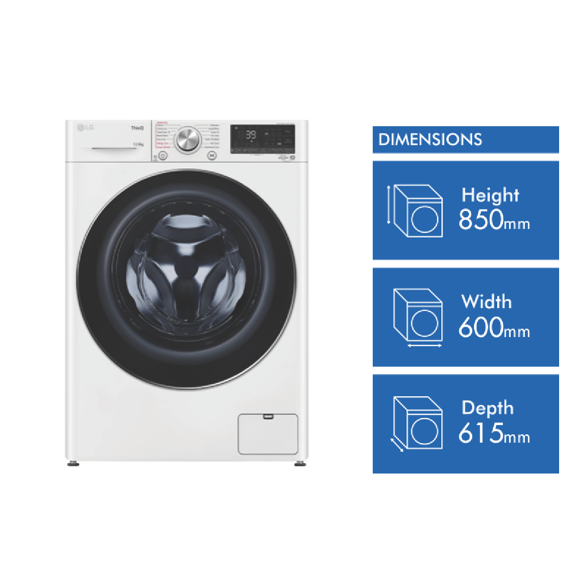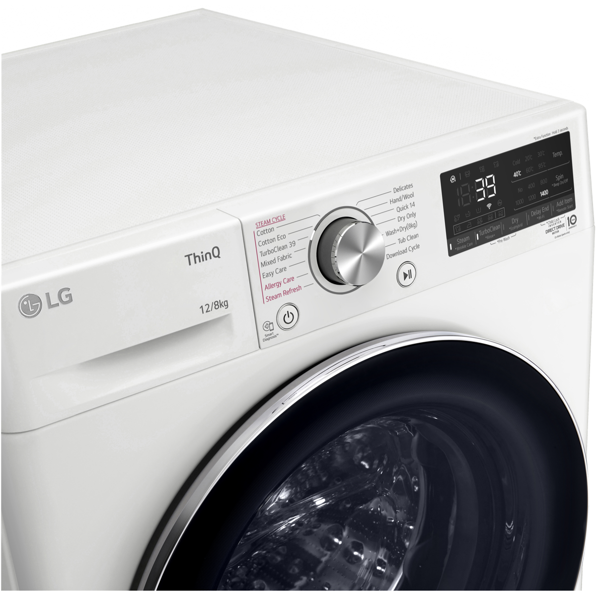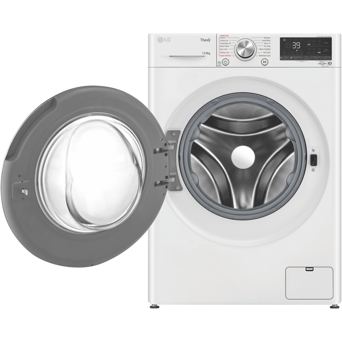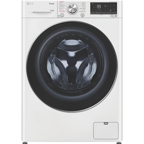 Discover the ultimate in laundry care with the LG 12kg Combo Washer Dryer. This large capacity front loader offers superior fabric care for all your washing needs. With a generous 12kg washing capacity 1400rpm max spin speed and 8kg drying capacity it handles even the largest loads with ease. The 4.5 star energy and water ratings make it an eco-friendly choice that's kind on your utility bills and the environment. The LG Series 9 washer dryer features AI DD Intelligent Fabric Care technology to customize wash cycles for optimal results. The Allergy Care cycle with steam eliminates up to 99.9% of dust mites and select allergens. Smart ThinQ capabilities let you control and monitor cycles remotely. With 16 specialized wash programs like Cotton Mixed Fabric Delicates Hand Wool and TurboClean 39 clothes get the tailored care they need. Variable temperature and spin speed settings allow further customization. In sleek white with a large 600mm width this combo unit delivers powerful cleaning performance while complementing modern laundry rooms. The intuitive control panel makes operation a breeze. With durable construction and a 2 year manufacturer's warranty the LG 12kg Combo Washer Dryer provides long-lasting quality and convenience. The manufacturer's part number for this product is WVC9-1412W. Discover the possibilities with this feature-packed washer dryer today.