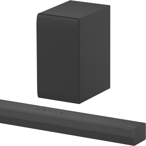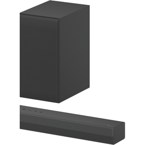Bring the theater experience straight to your living room with the LG 2.1Ch 300W Soundbar. This sleek black soundbar pumps out room-filling audio with 300 watts of total power through its 2.1-channel speaker configuration. Connect wirelessly via Bluetooth or use the convenient optical and HDMI ports. AI Sound Pro mode analyzes content and optimizes sound settings in real time. Switch between cinema standard and game modes to suit your entertainment. The wireless subwoofer delivers deep thumping bass you can feel. At just 63mm high the soundbar fits neatly under any TV while projecting audio clearly. Control playback and volume with the included remote. Enjoy immersive cinematic audio for movies music and games. This LG soundbar comes with a 1 year manufacturer's warranty for peace of mind. The manufacturer's part number for this product is S40T. Discover crisp powerful sound today with the feature-packed LG 2.1Ch 300W Soundbar.