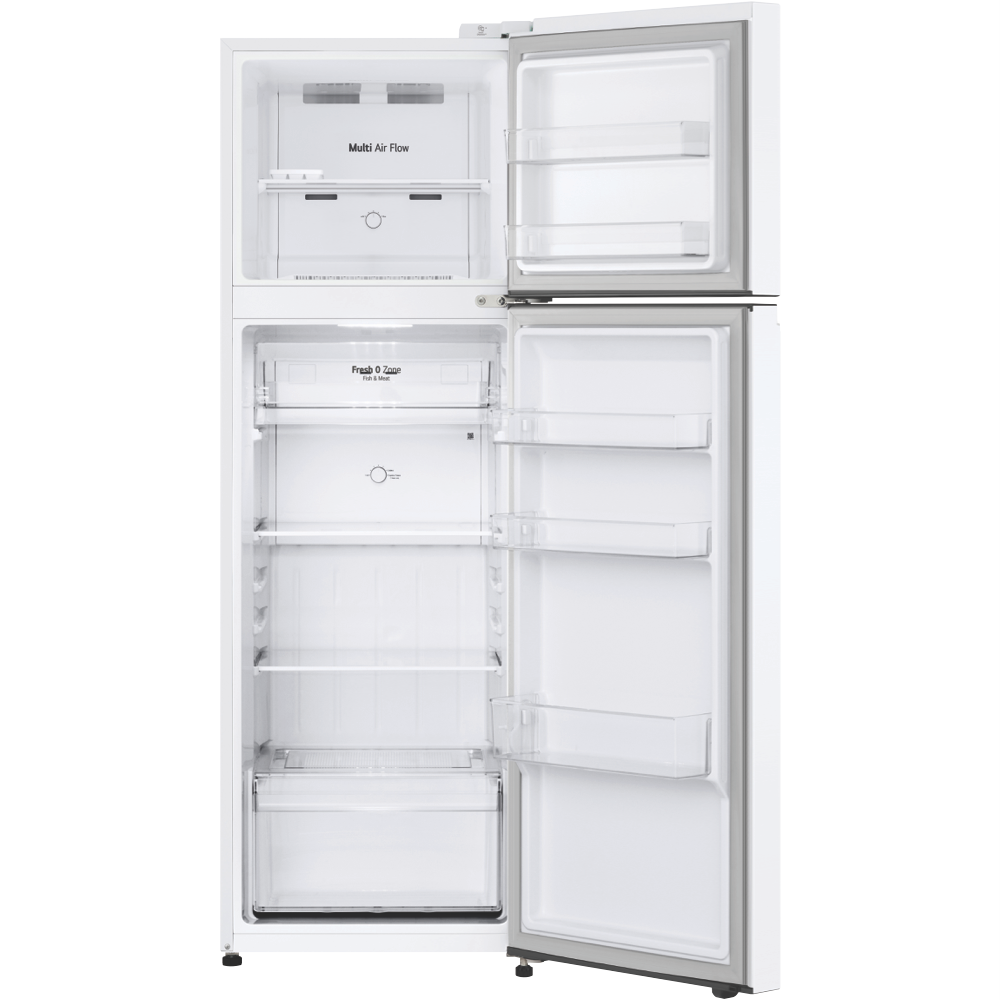 This top mount refrigerator offers 266 litres of total capacity with 208 litres in the fridge section and 58 litres in the freezer. The white design features a mix of fixed pull-out and adjustable shelves for flexible storage options. You'll appreciate the express freeze function for quick cooling while the Fresh 0 zone helps keep meat and fish at optimal temperatures. Linear cooling maintains consistent temperatures throughout and the convenient pull-out shelf tray makes accessing items easier. Comes with a 2-year manufacturer's warranty. Model GT-2WI.